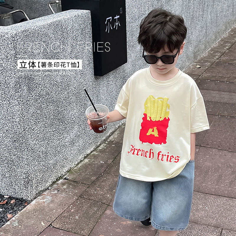 童酷湖州织里童装儿童夏装可爱压花薯条印花男童短袖