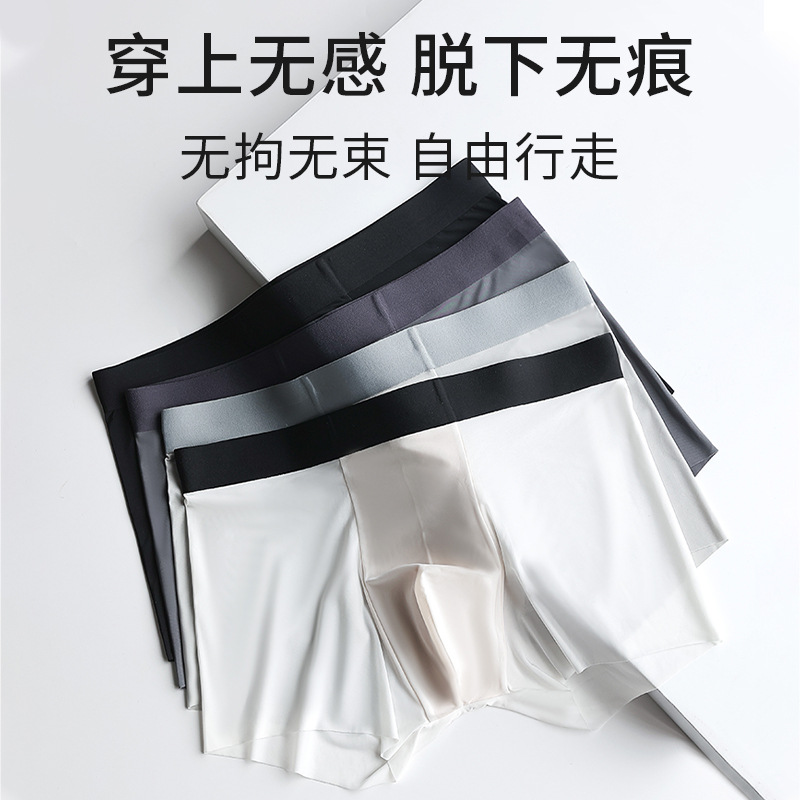 春夏新款无痕冰丝男士内裤超薄速干透气棉质裆纯色四角裤舒适薄款