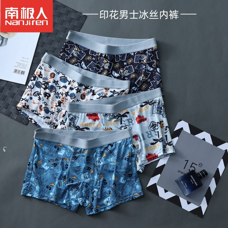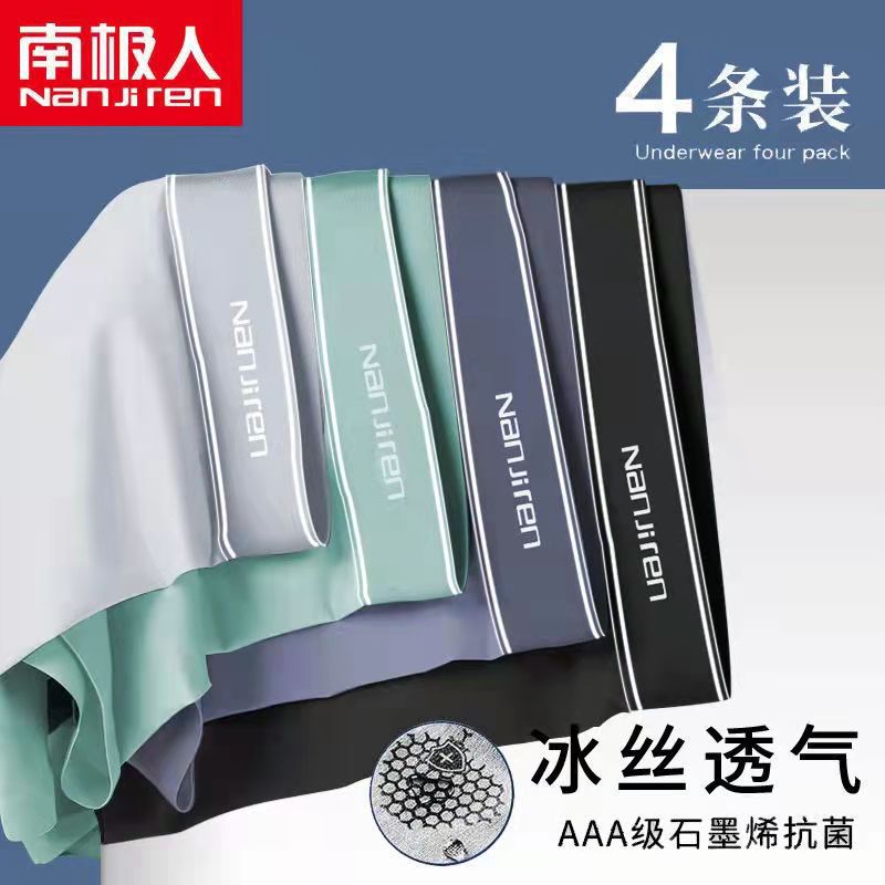 南极人男士内裤冰丝四角裤衩子平角裤夏季薄款无痕抗菌透气短裤男
