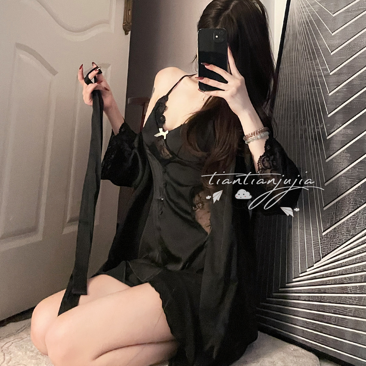 性感睡衣女黑色蕾丝冰丝睡裙小胸吊带睡袍纯欲高级感夏季新款