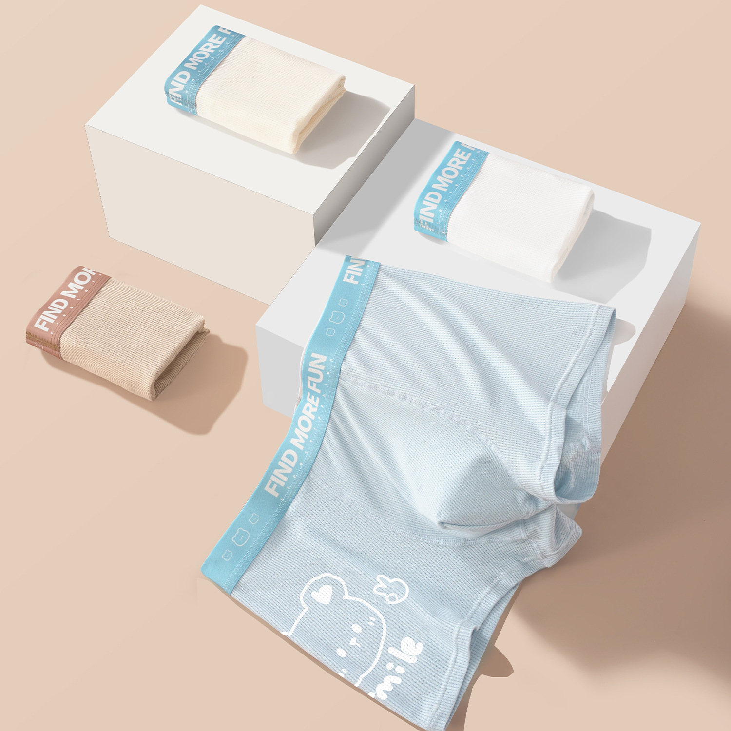 男内裤纯色华夫格棉流行印花青少年小奶狗抑菌裆舒适透气男士内裤
