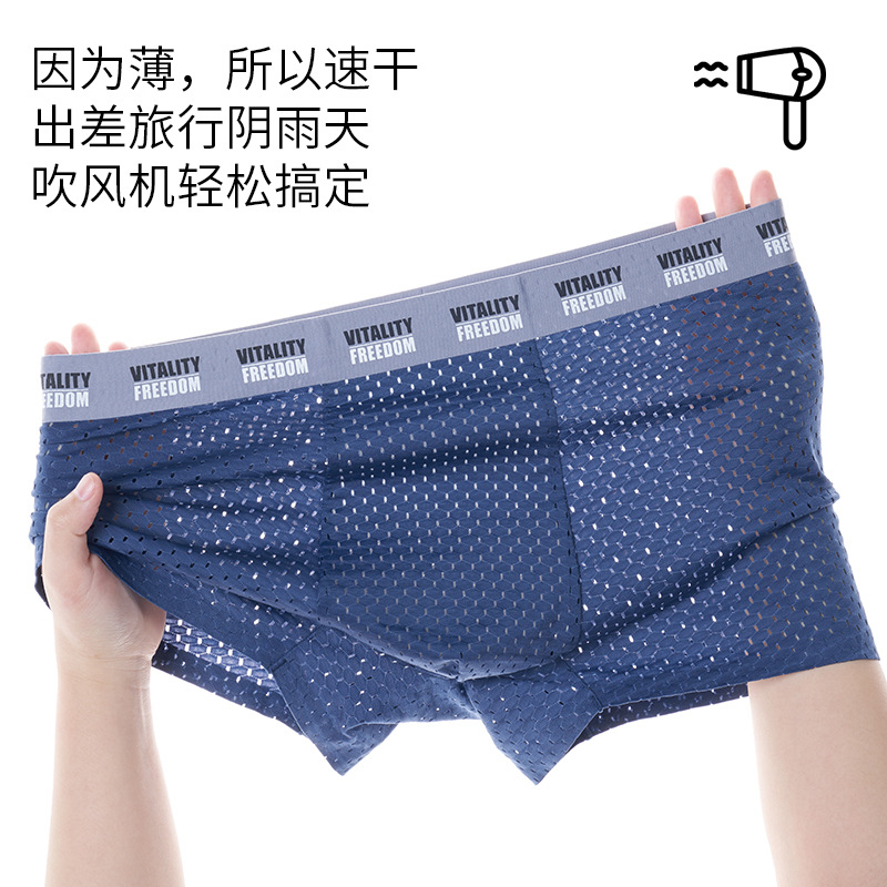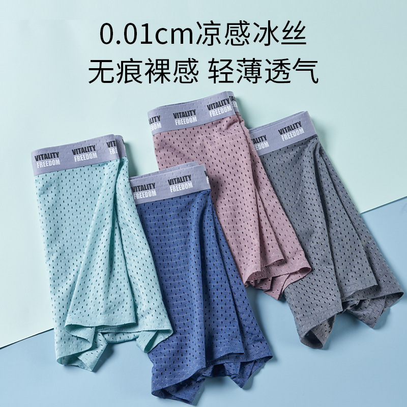 夏季透气大网孔男士内裤平角裤冰丝内裤 男士短裤无痕男士四角裤