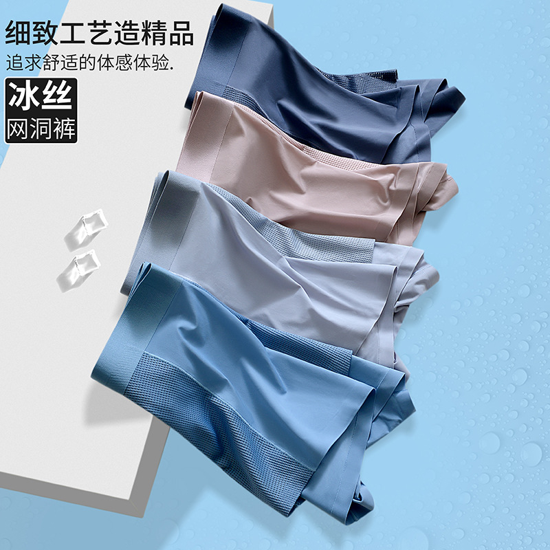120S冰丝空调裤透气速干男士内裤男7A桑蚕丝抗菌夏季薄平角裤