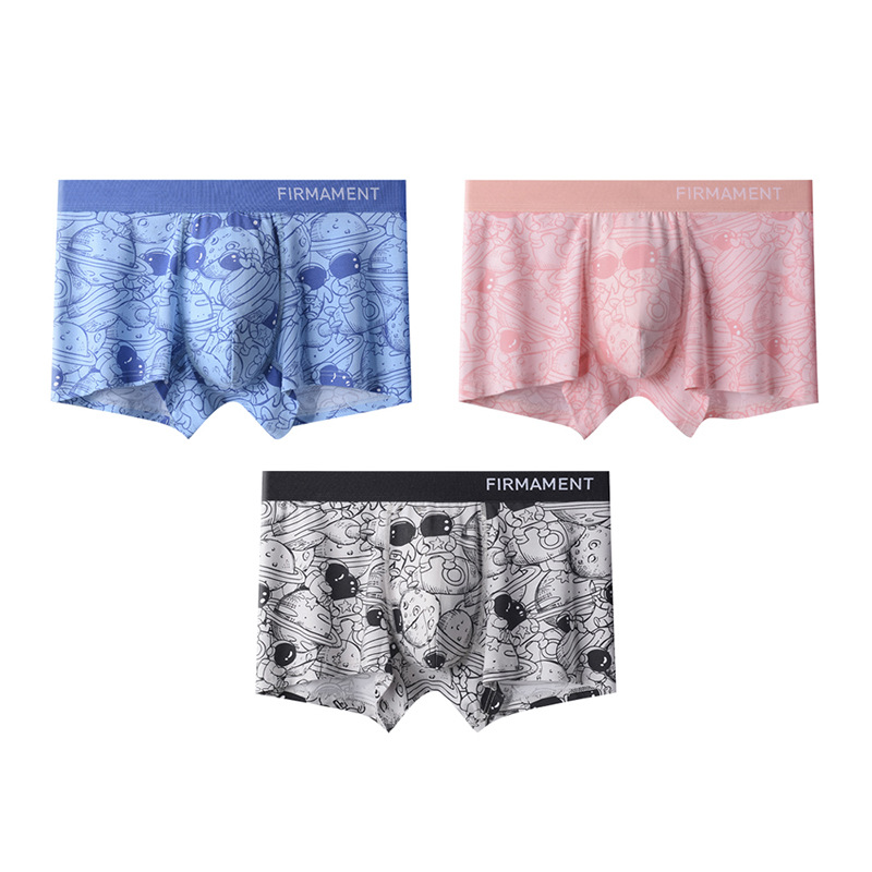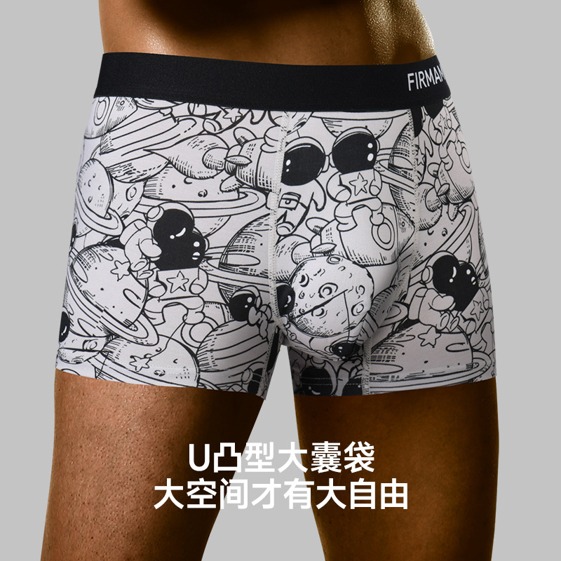 新款猛男粉色太空印花男生抗菌平角裤衩头莫代尔男士内裤工厂