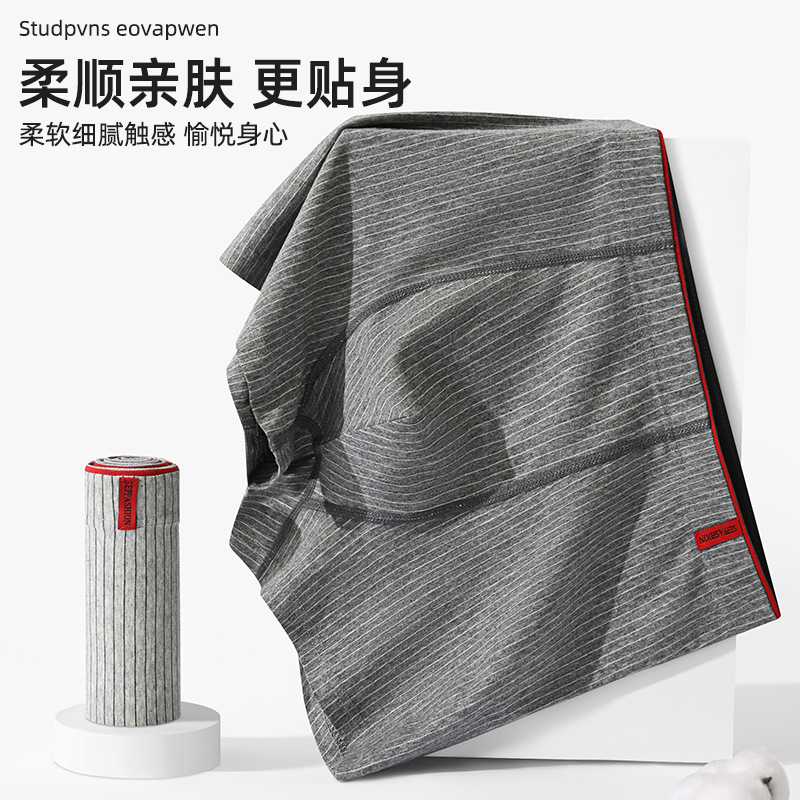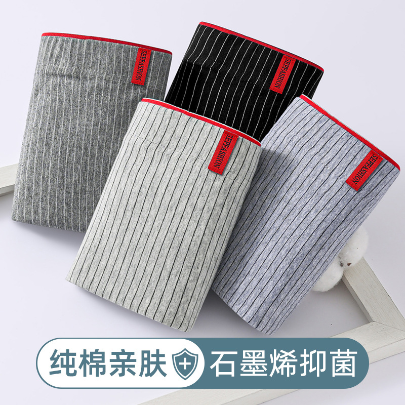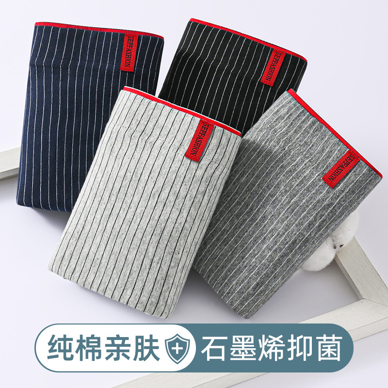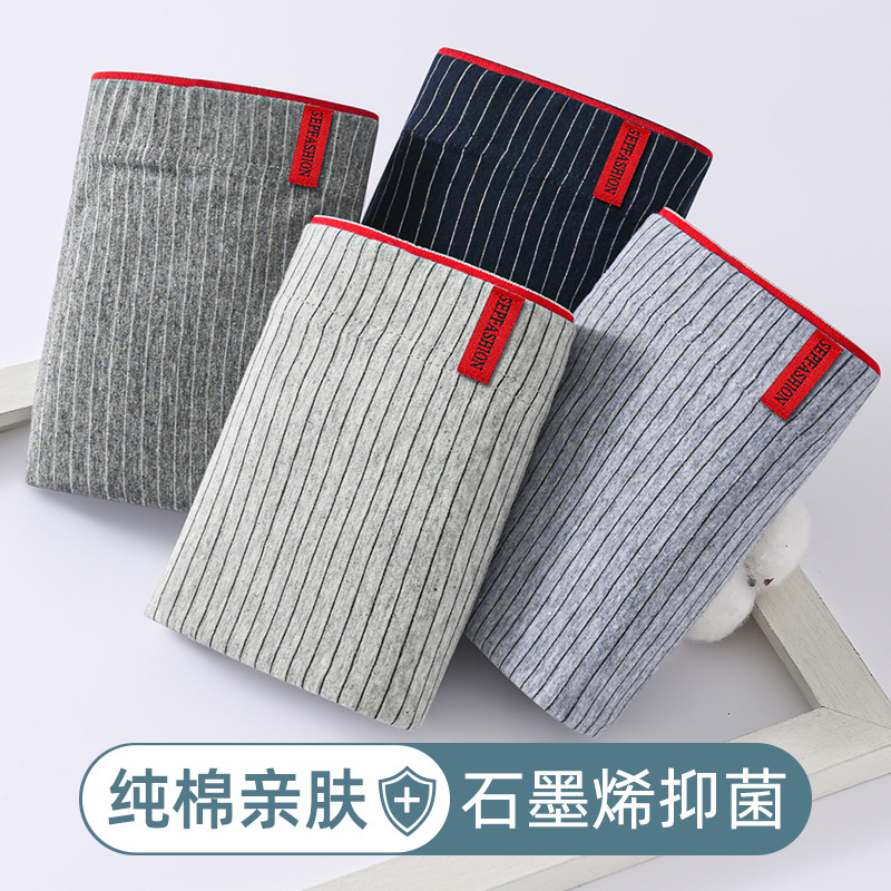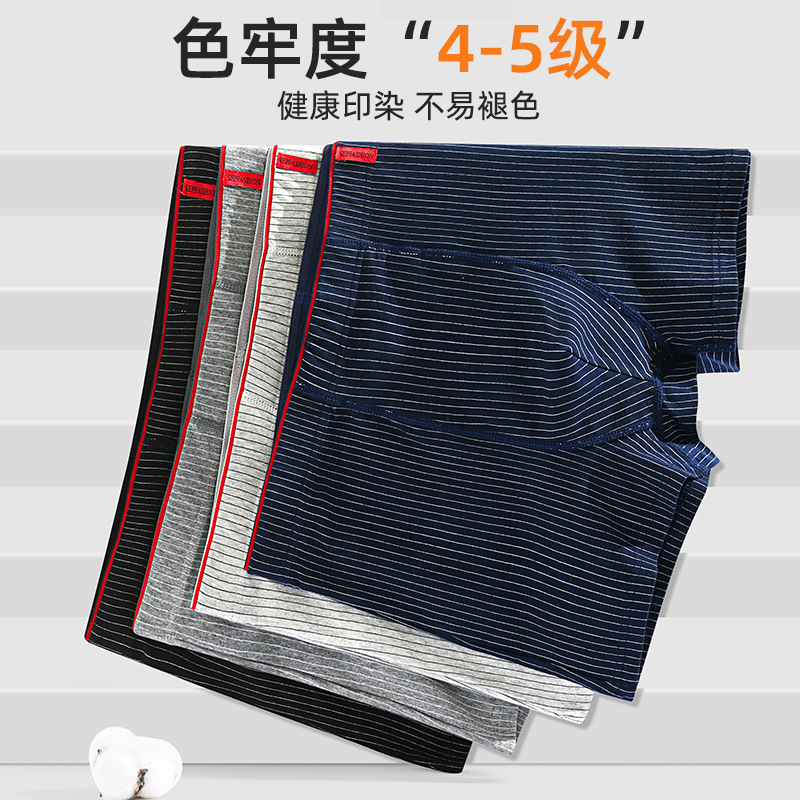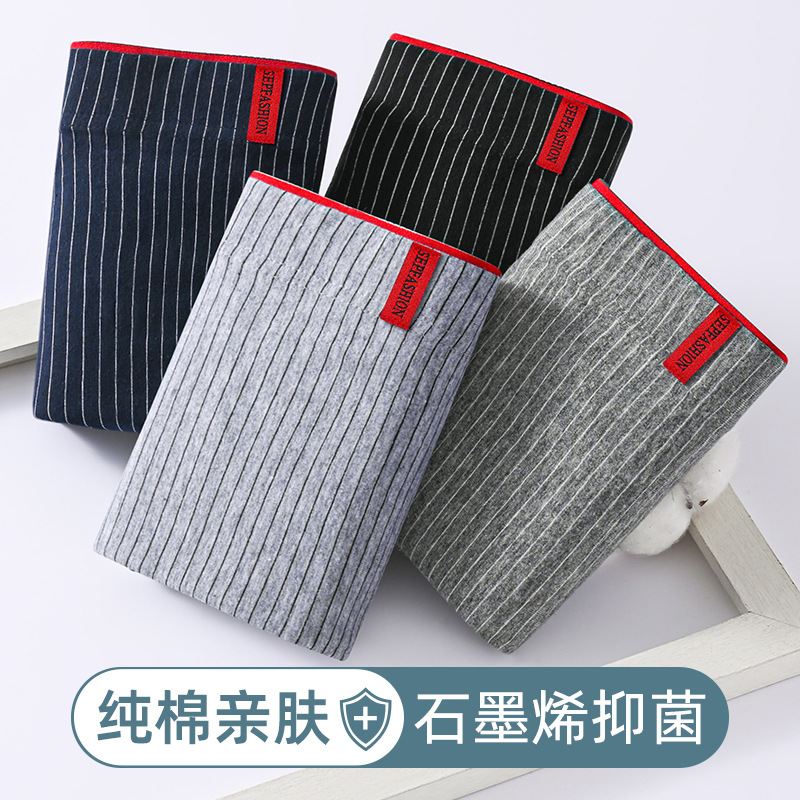 男士内裤秋冬季抗菌男款棉质条纹平角裤男生大码透气四角裤杈中腰