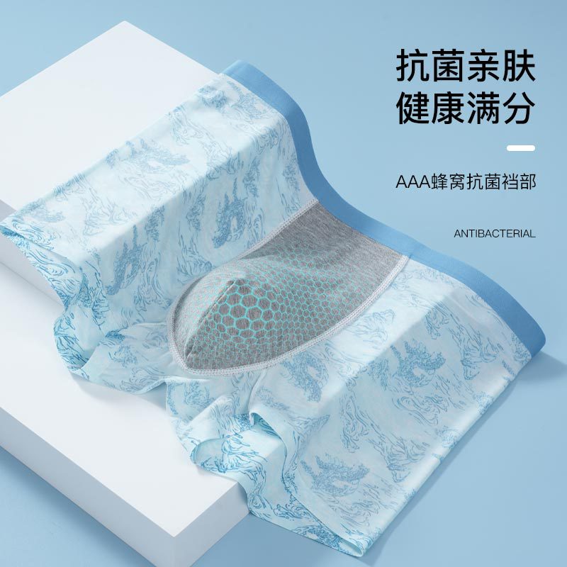 男士内裤夏季新款冰丝无痕内裤国潮风印花透气平角裤抗菌男士内裤