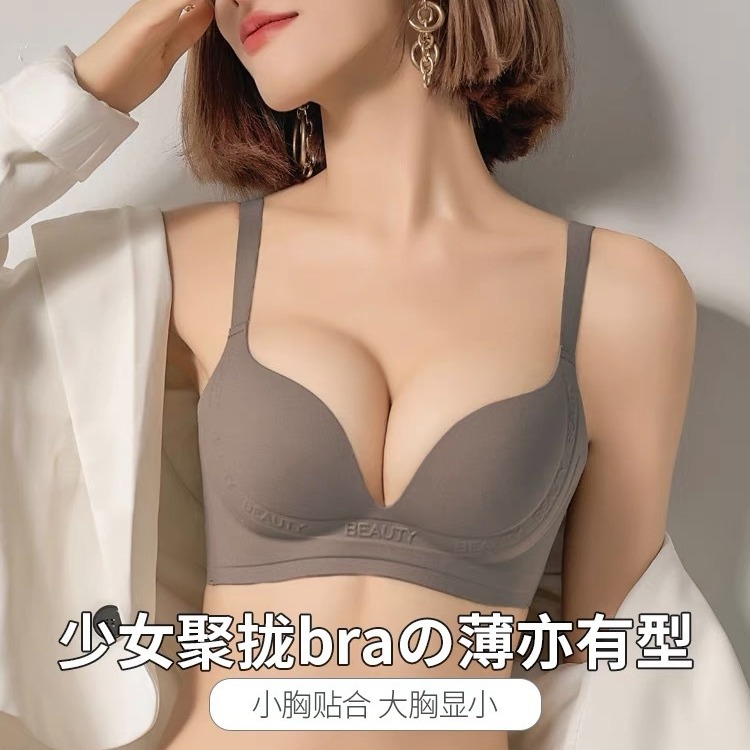 无痕内衣女大胸显小胸聚拢收副乳无钢圈交叉美背提拉上托文胸薄款