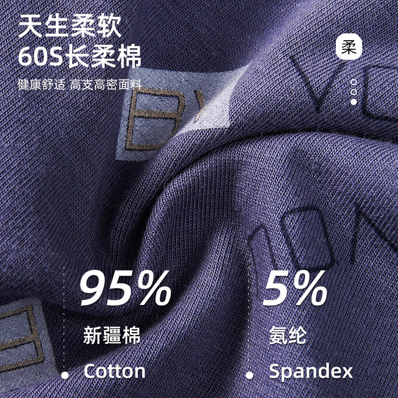新款男士60支拼色字母长绒棉平角裤 5A抗菌底档薄柔中腰透气内裤