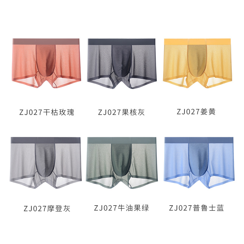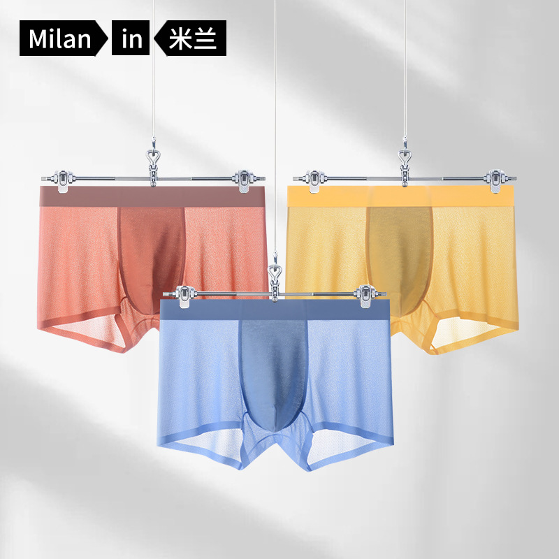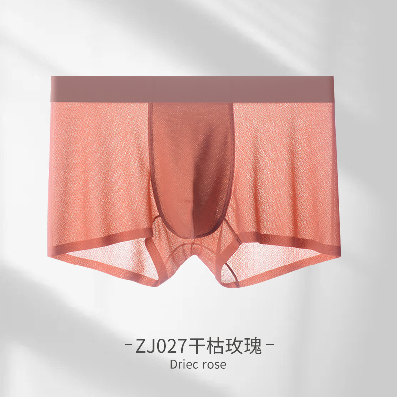 米兰新款冰丝薄感蜂窝泡泡网孔无痕男士内裤纯色透气平角裤男
