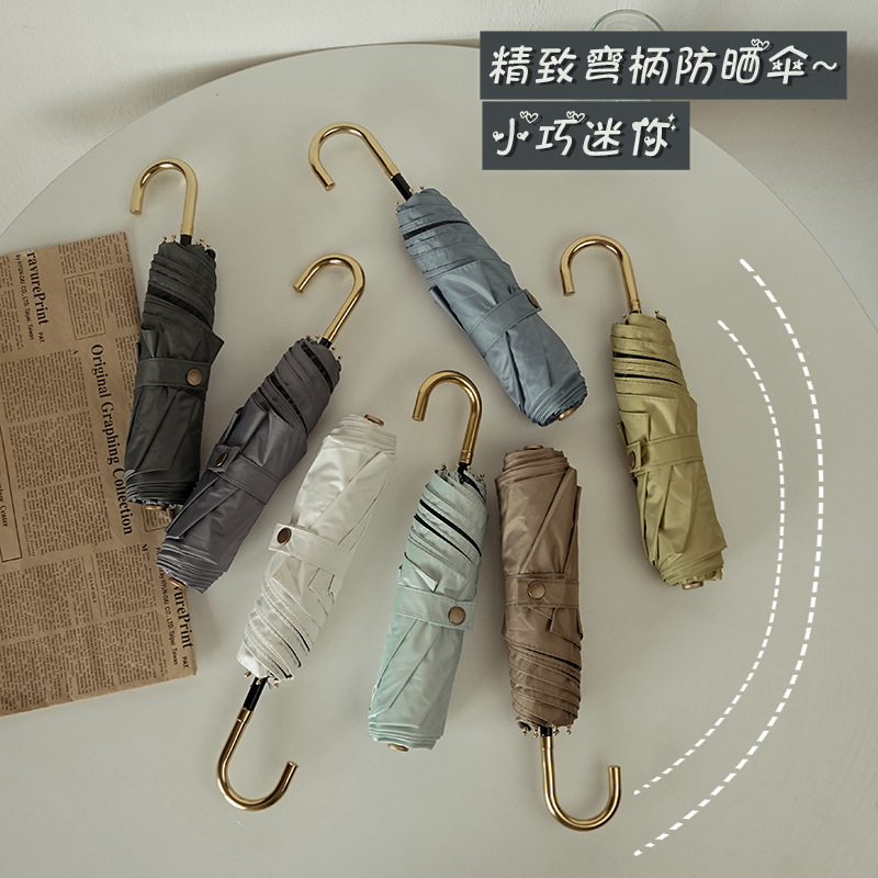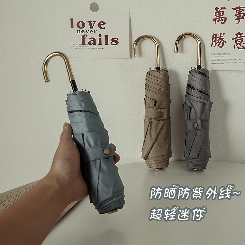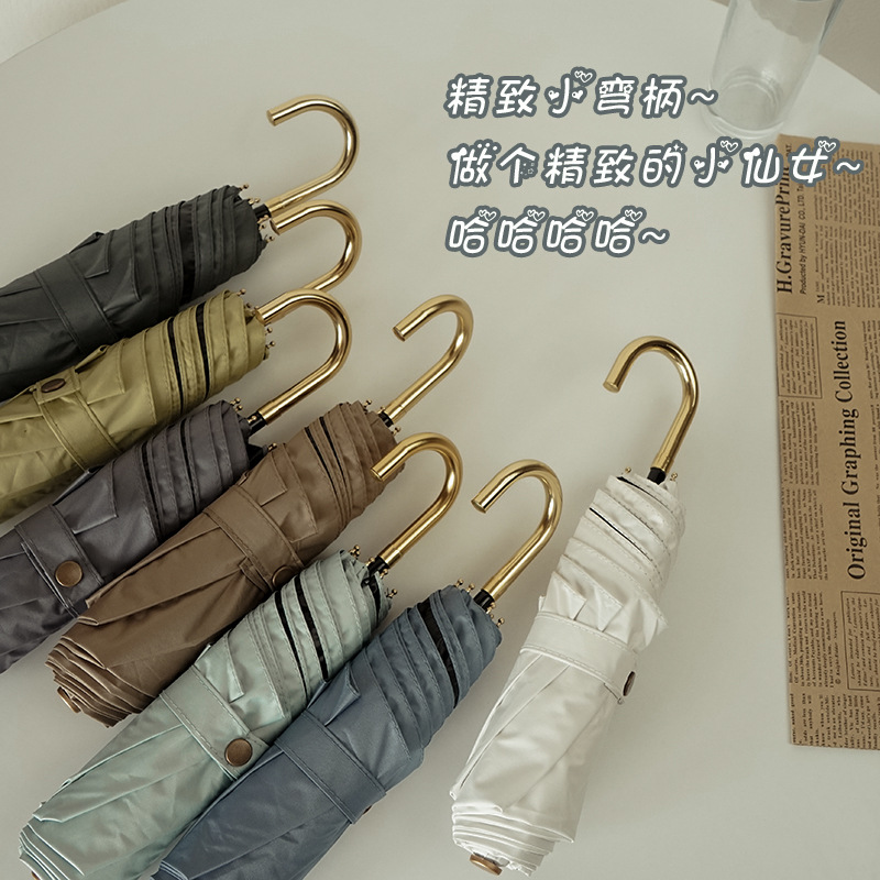 雨伞女黑胶晴雨两用防晒遮阳伞折叠简约弯钩太阳伞