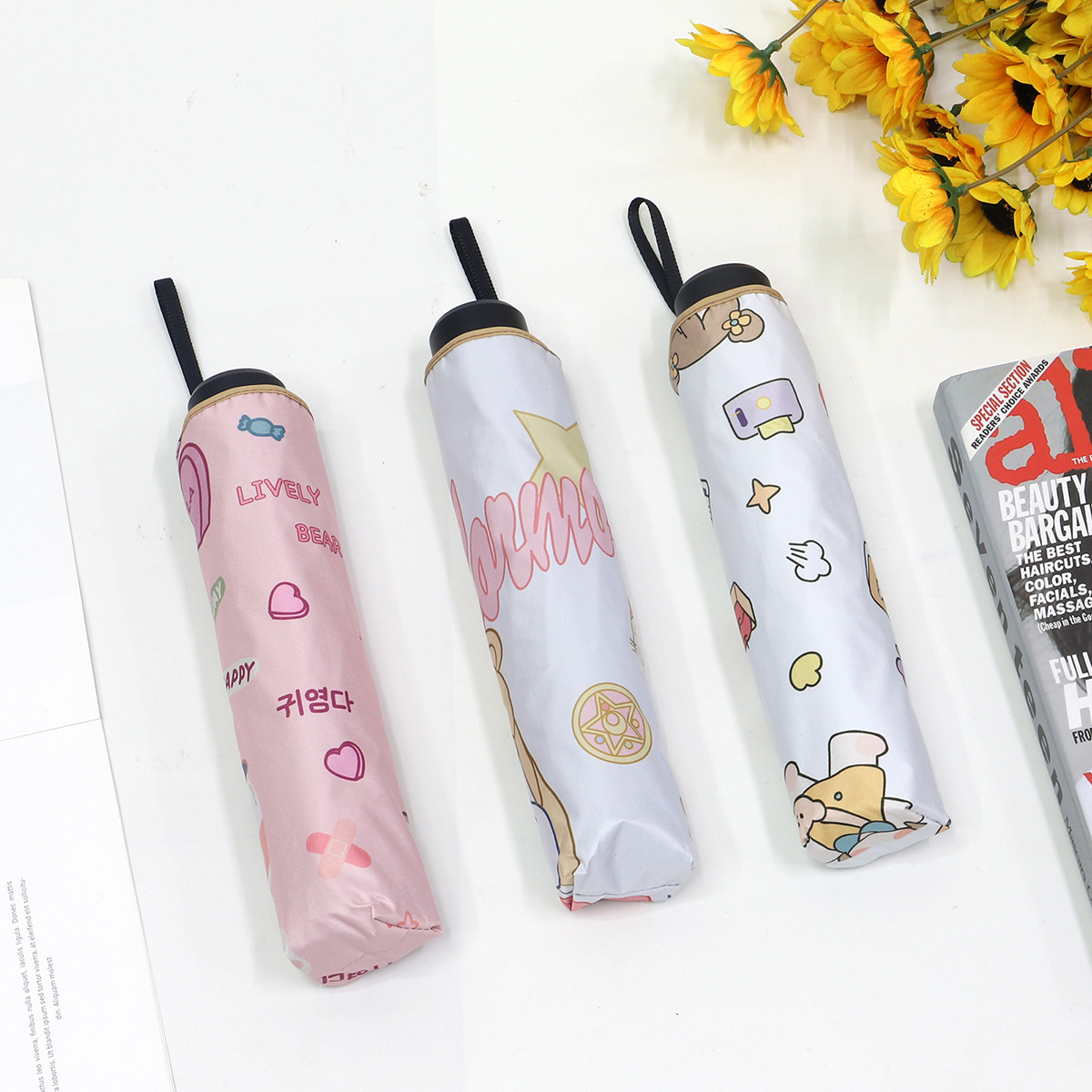 黑胶晴雨两用雨伞高端卡通美少女三折折叠防紫外线太阳伞