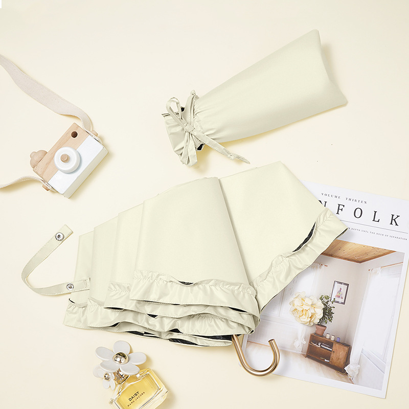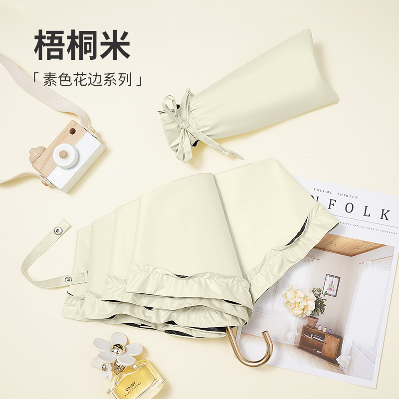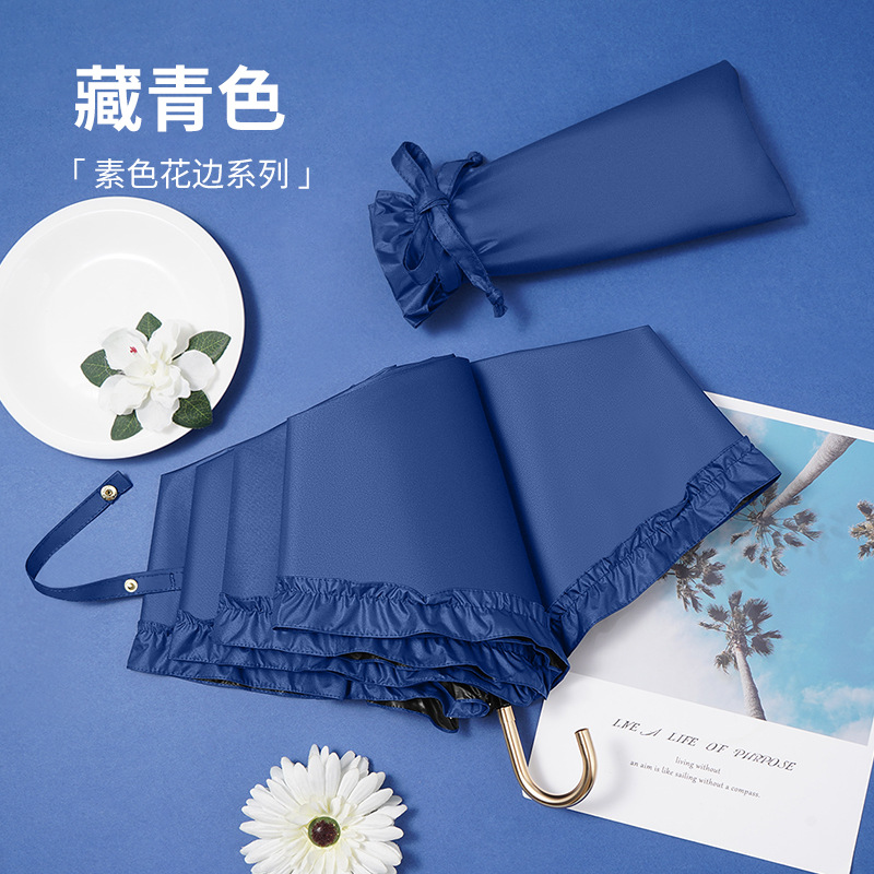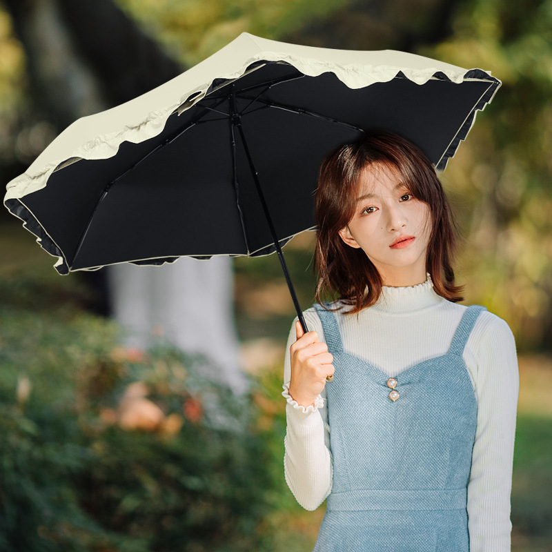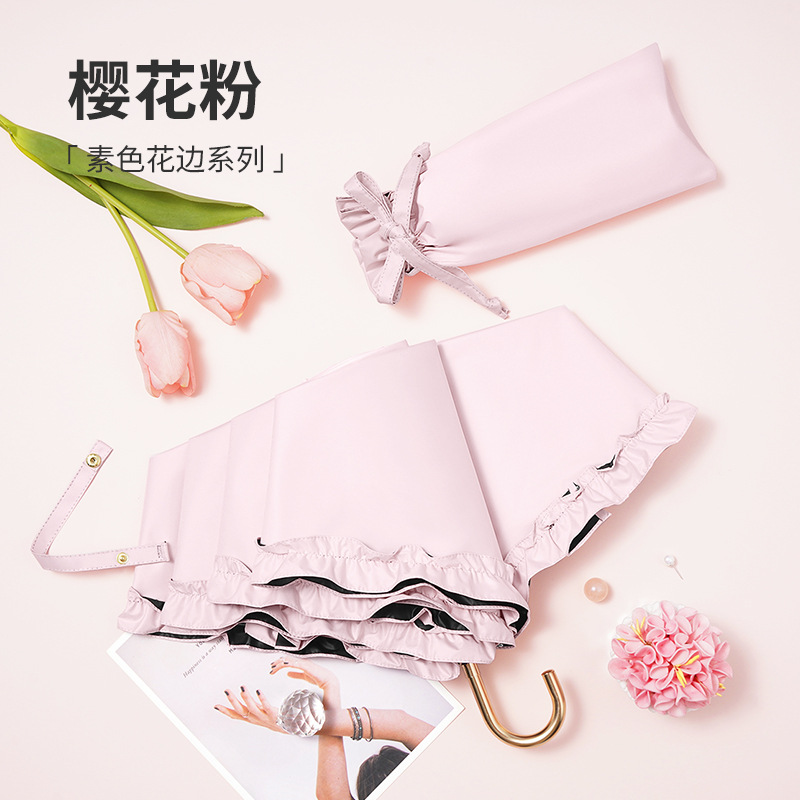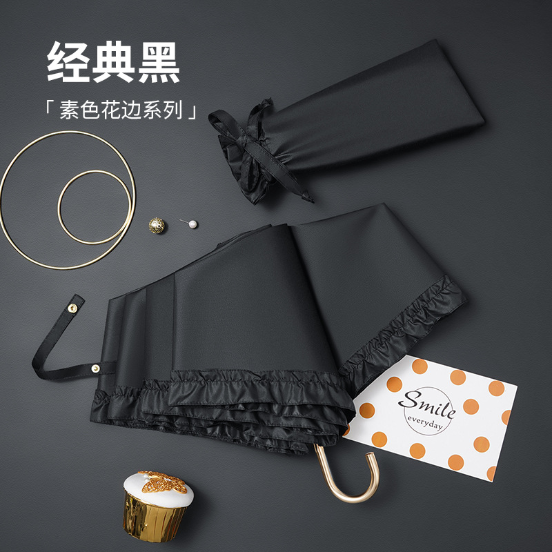 日式新款三折伞可爱花边超轻伞黑胶抗风防紫外线伞晴雨两用防晒伞