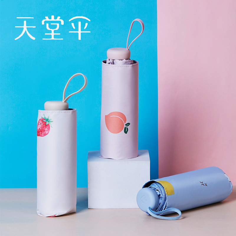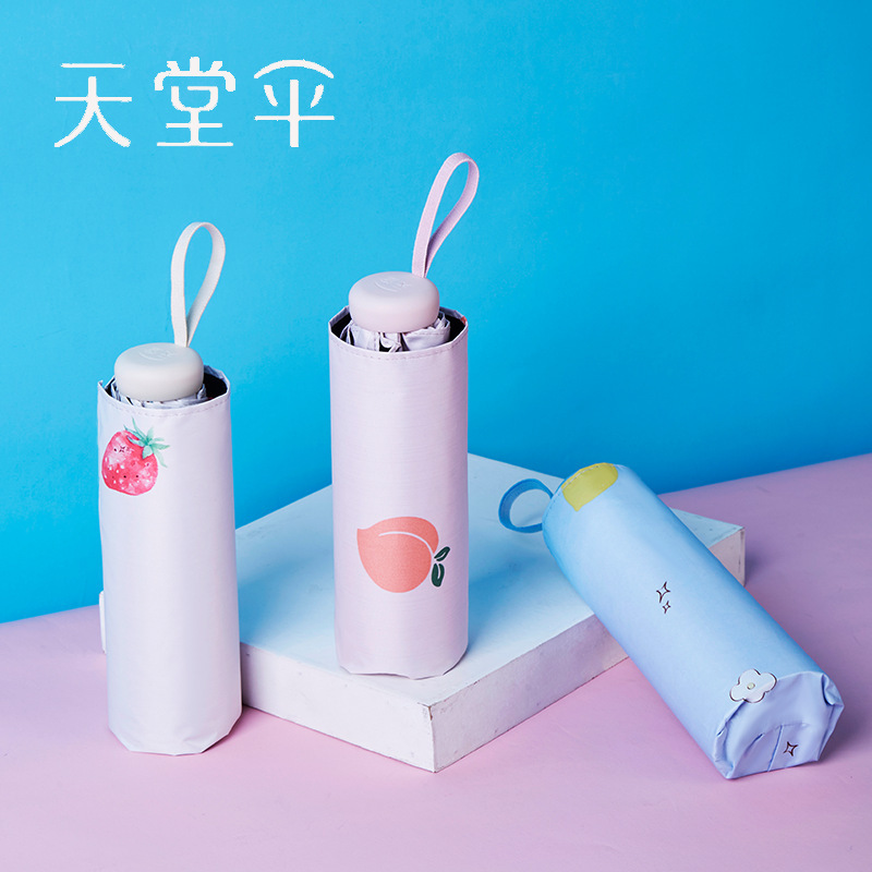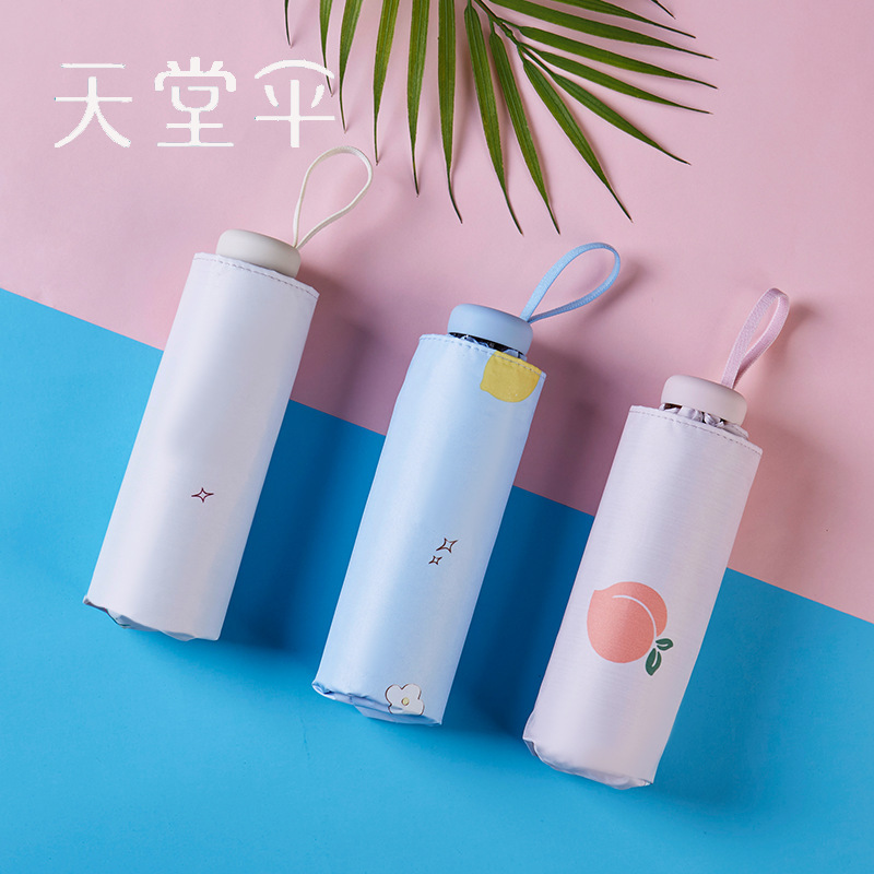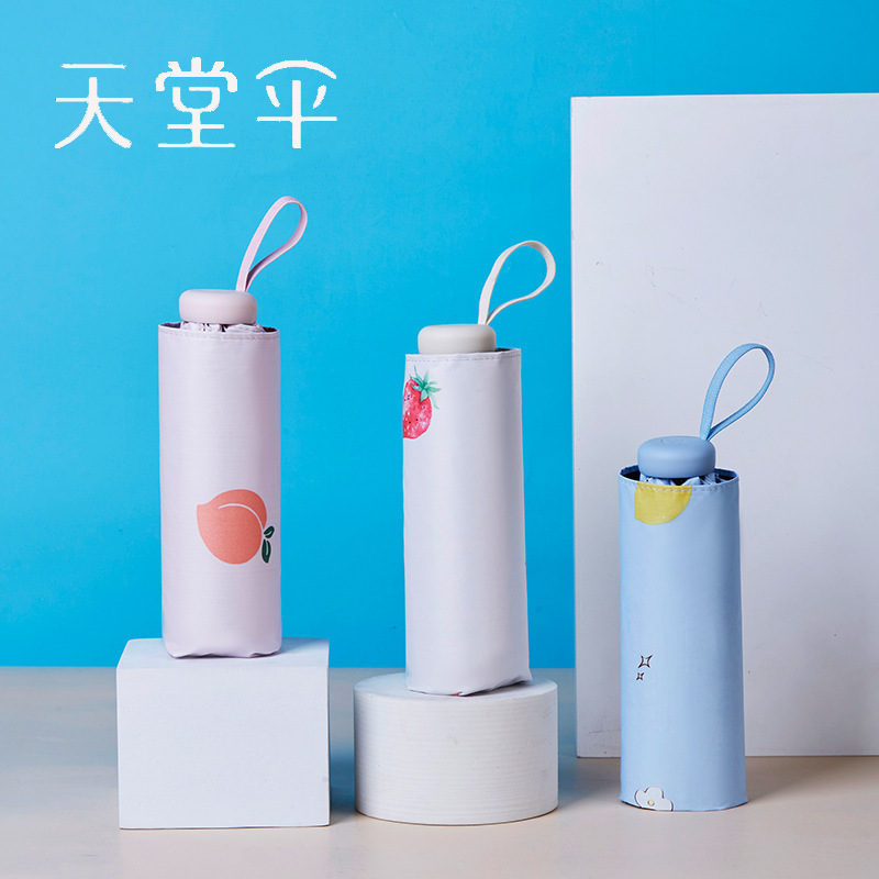 天堂伞53069E水果啵啵防晒太阳伞便携口袋五折伞防紫外线晴雨两用
