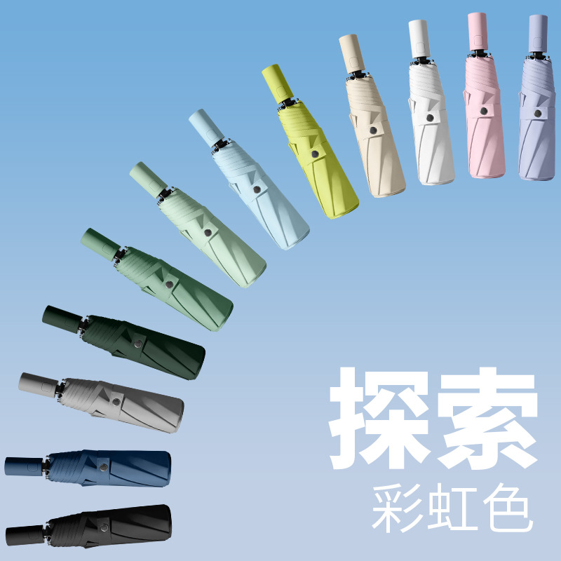 雨伞全自动黑胶晴雨伞防晒防紫外线太阳伞简约纯色自动伞
