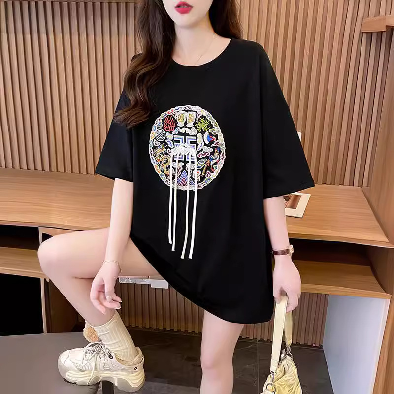 新中式国风短袖T恤女2025新款夏季设计感重工刺绣盘扣宽松打底衫