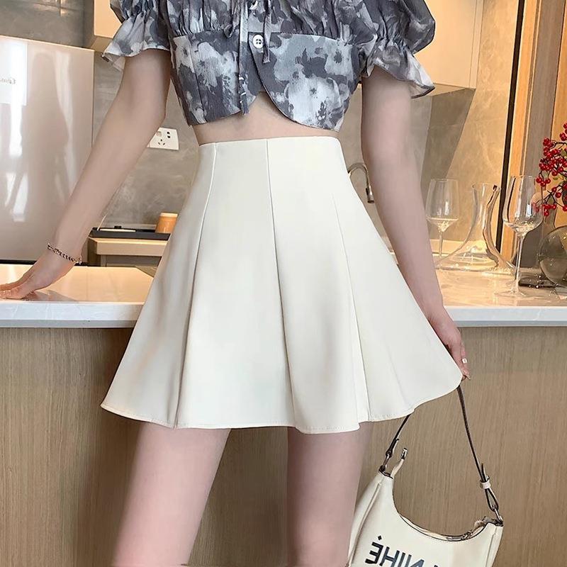 夏季气质款a字半身裙女生韩版百搭高腰显瘦百褶西装短款伞裙