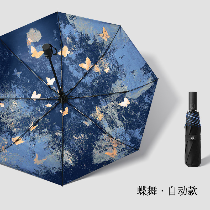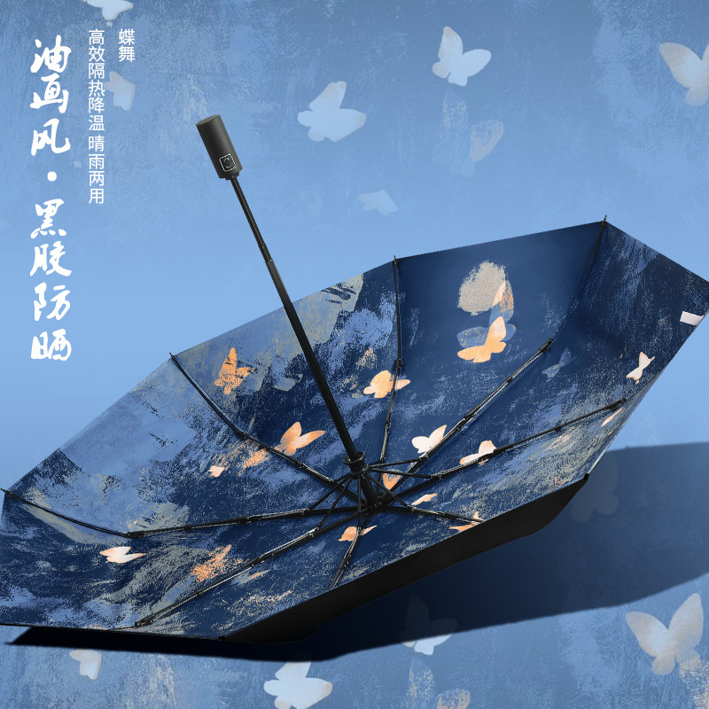 蝴蝶太阳伞雨伞防晒防紫外线女黑胶遮阳伞晴雨两用高级感全自脃