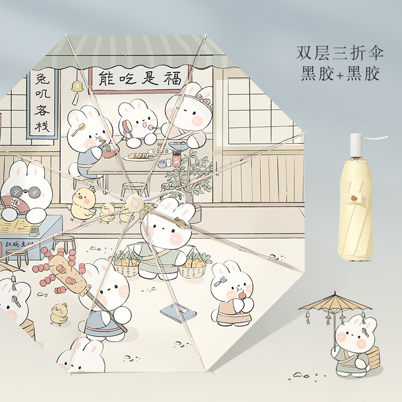 双层能吃是福-三折款【双层防晒防雨 晴雨两用】