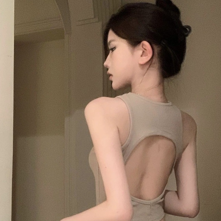 辣妹镂空露背工字小背心女夏无袖紧身黑色打底衫内搭短款上衣外穿