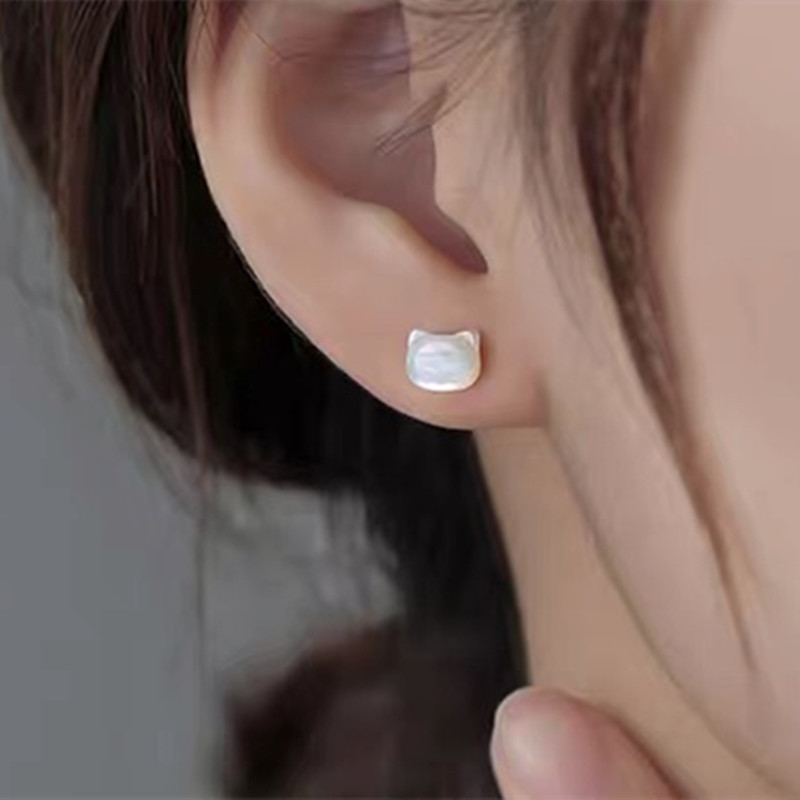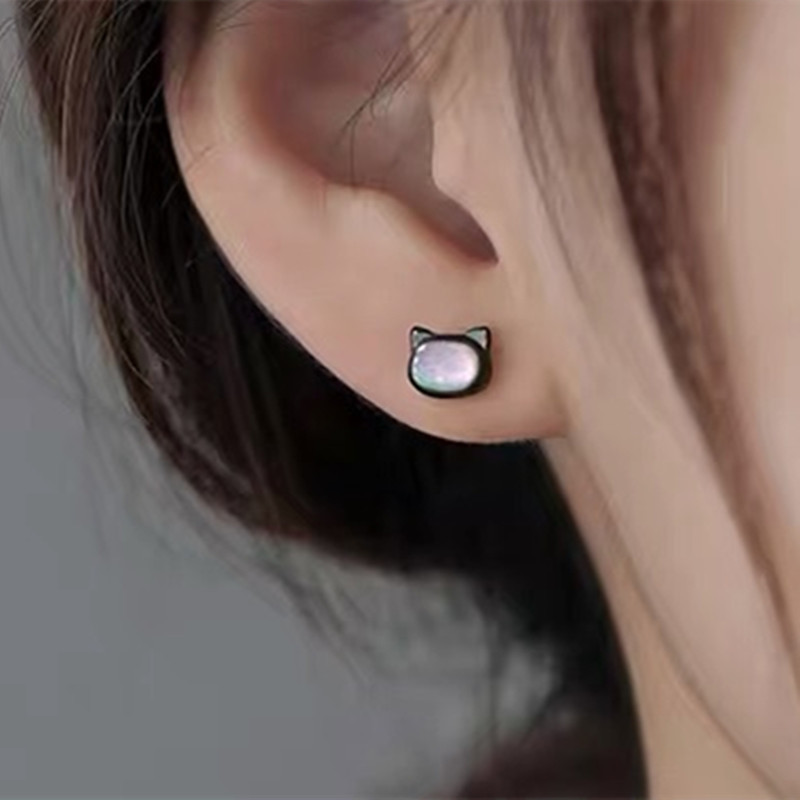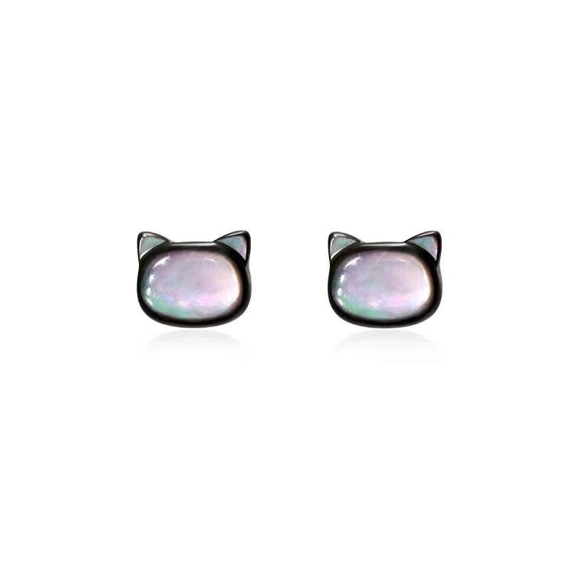 方行s925纯银贝壳黑猫耳钉耳环女小众高级感年新款潮夏季耳饰