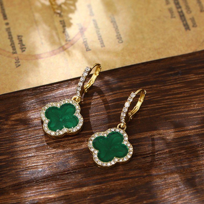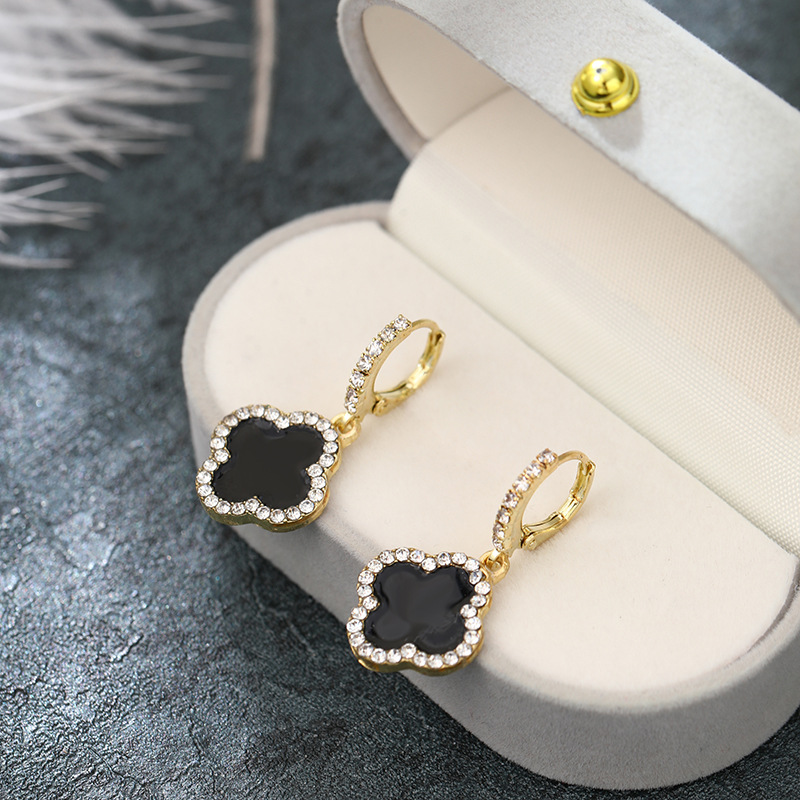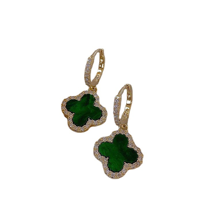 S925银针韩国四叶草年新款潮精致微镶闪钻高级感耳钉耳饰