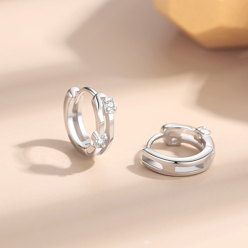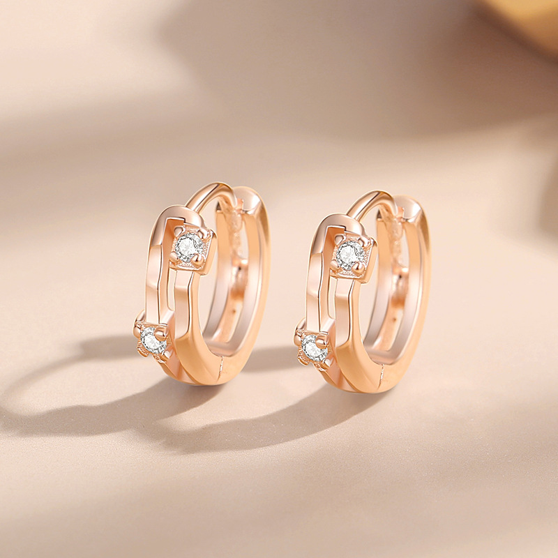 耳环925銀设计感双层镶钻高级感耳环日韩轻奢叠戴风925批发耳饰