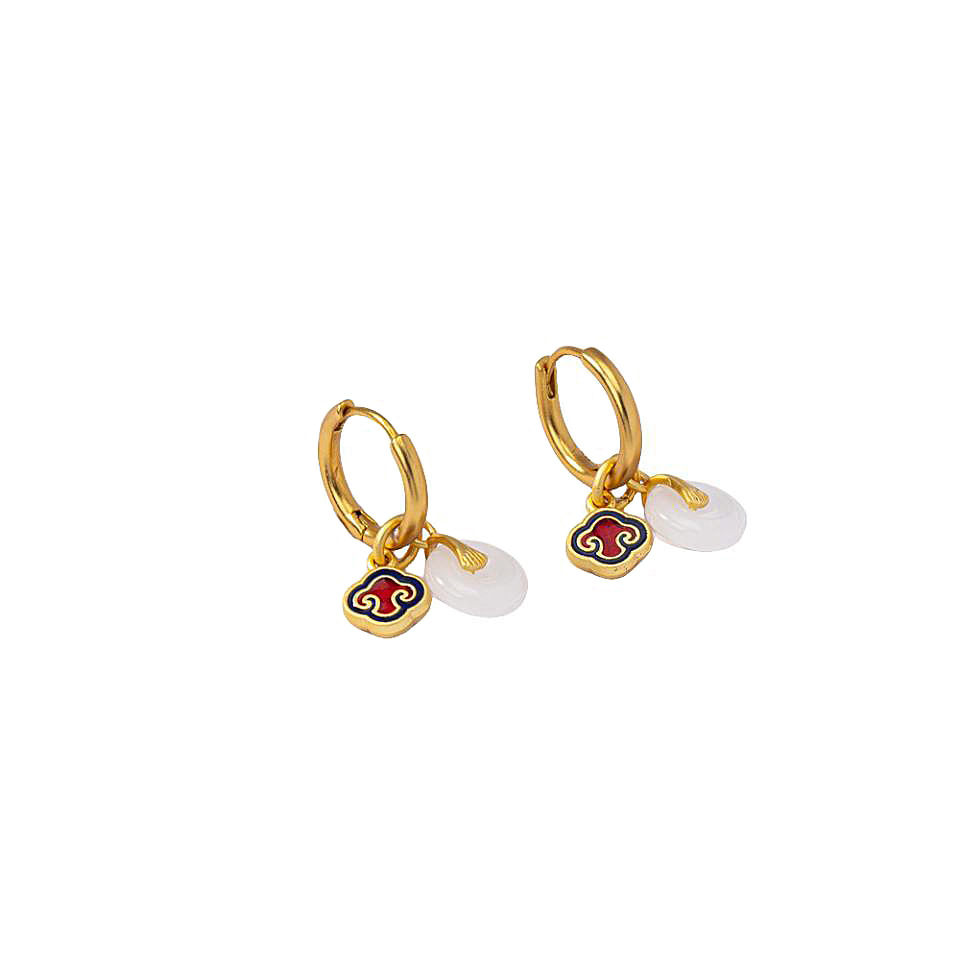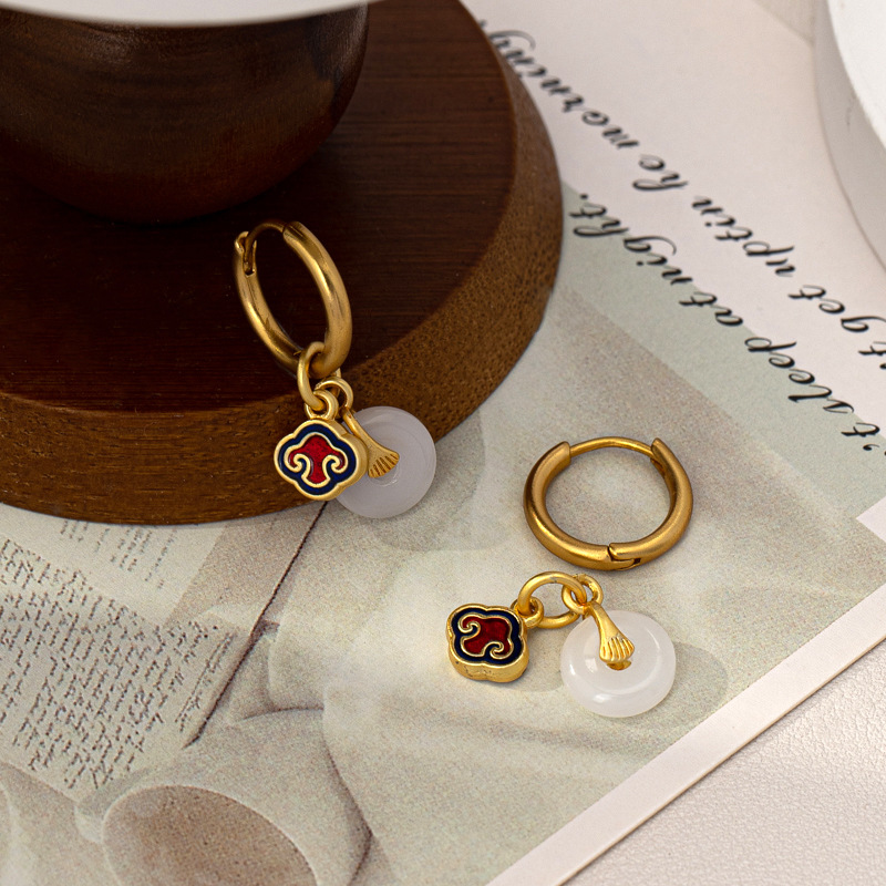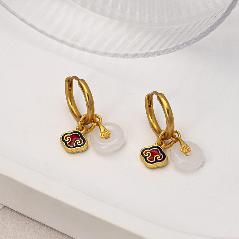 青岛耳饰品古法沙金玉石平安扣耳钉烧蓝珐琅高级感小众百搭耳饰女