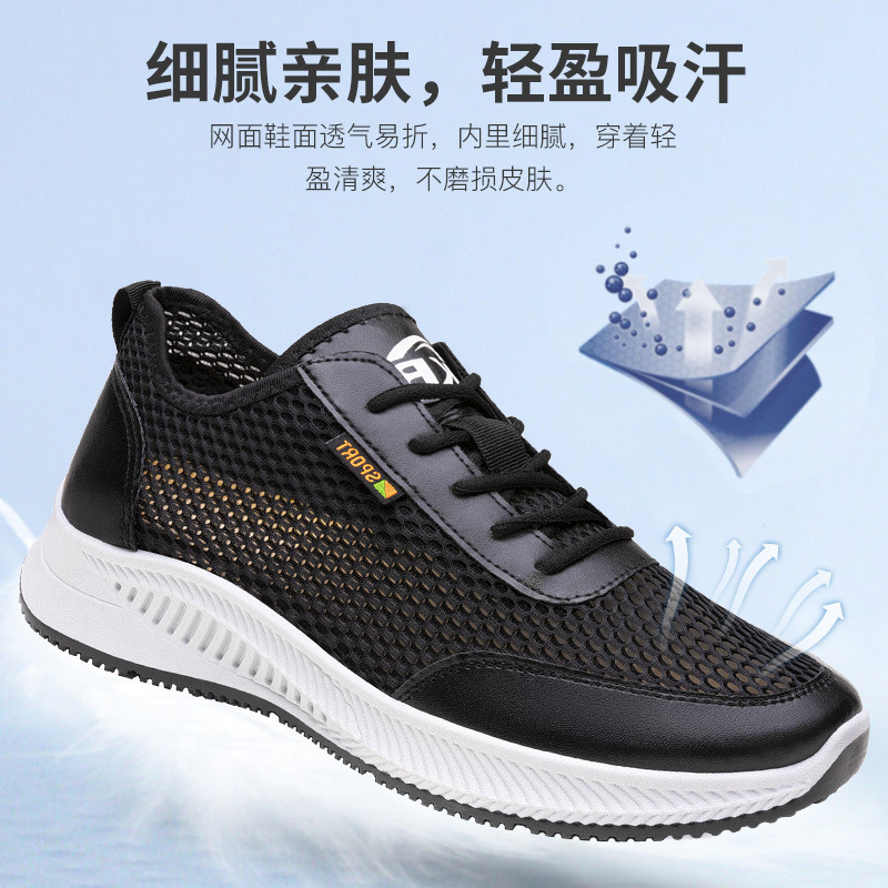 夏季透气飞织网面薄款男鞋洞洞运动跑步鞋软底男士休闲旅游鞋防滑