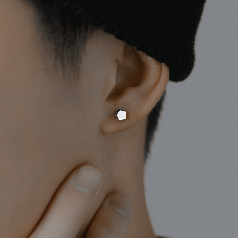 925银针养耳洞耳钉男潮简约百搭高级感银色个性单只耳饰男生