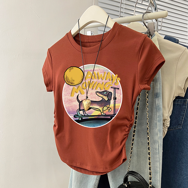 不规则印花短款正肩短袖t恤女夏季美式复古设计感上衣