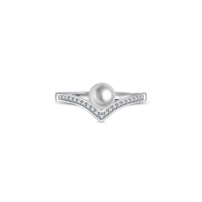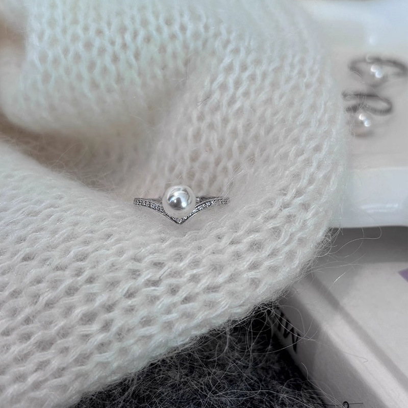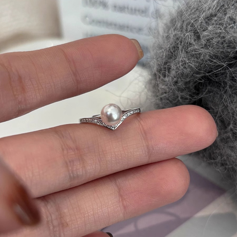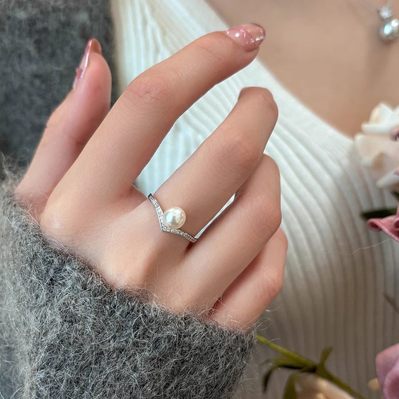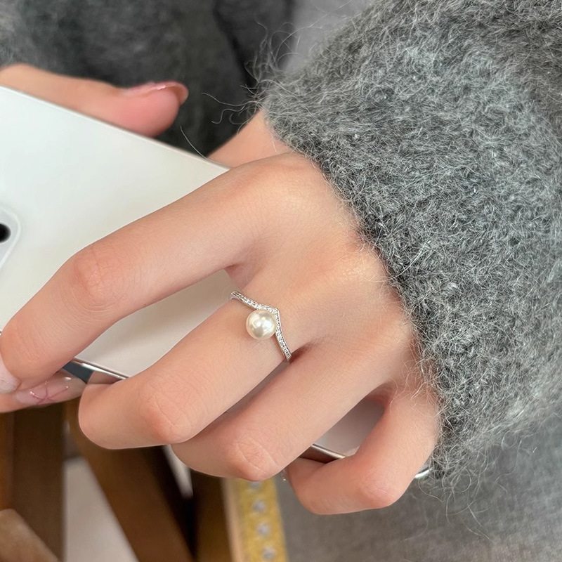 蒂奇S925纯银ins冷淡风仿珍珠戒指女韩版简约高级感镶锆石食指戒