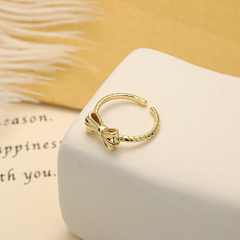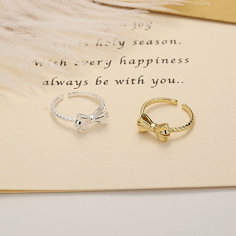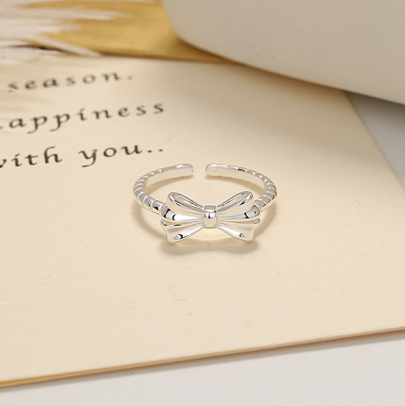 s925纯银蝴蝶结戒指女小众设计百搭高级感ins风轻奢简约开口指环