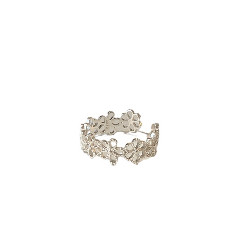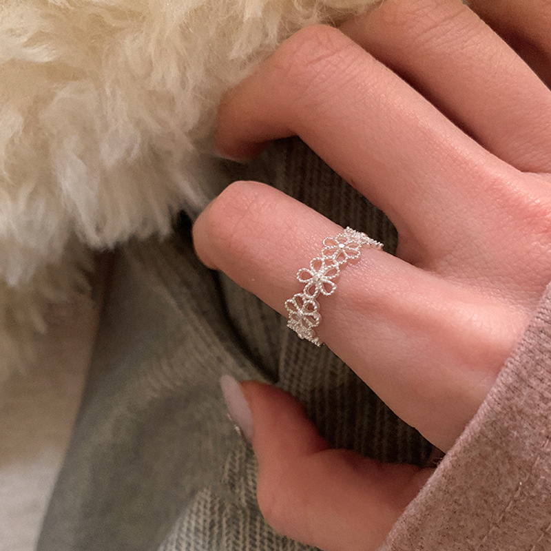 甜酷风缕空花朵开口戒指女小众设计感轻奢优雅高级气质指环戒子