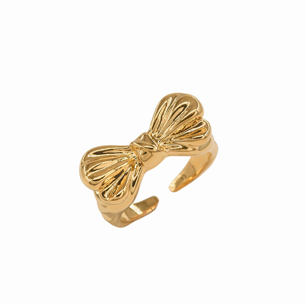 轻奢小众设计蝴蝶结开口戒指年新款潮食指戒高级感素圈指环女