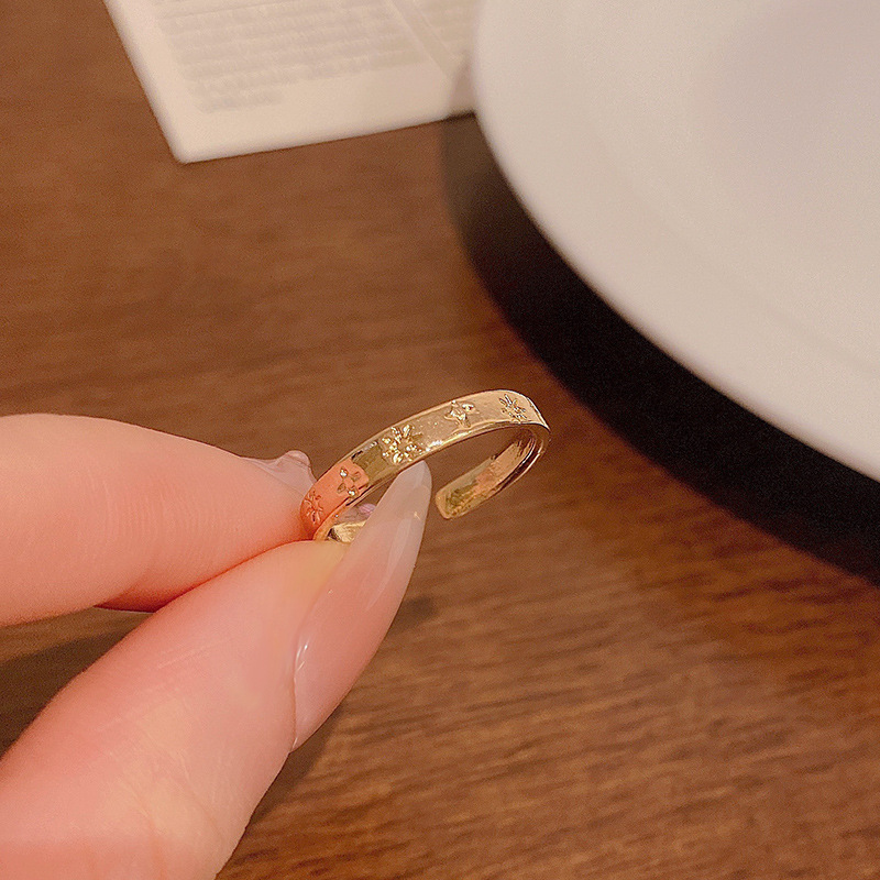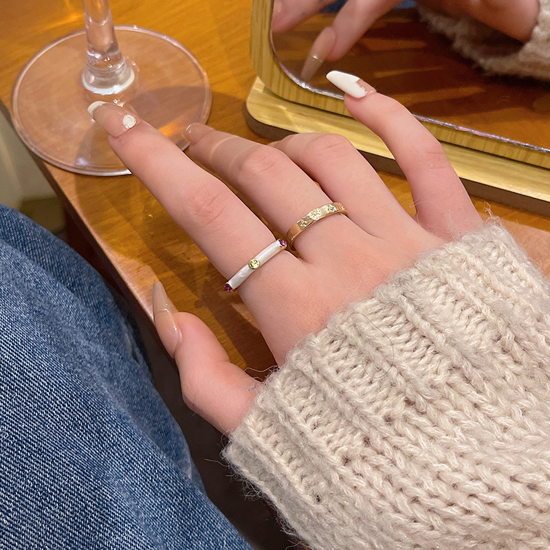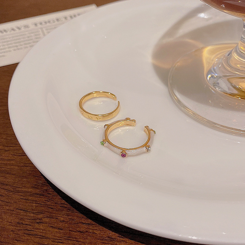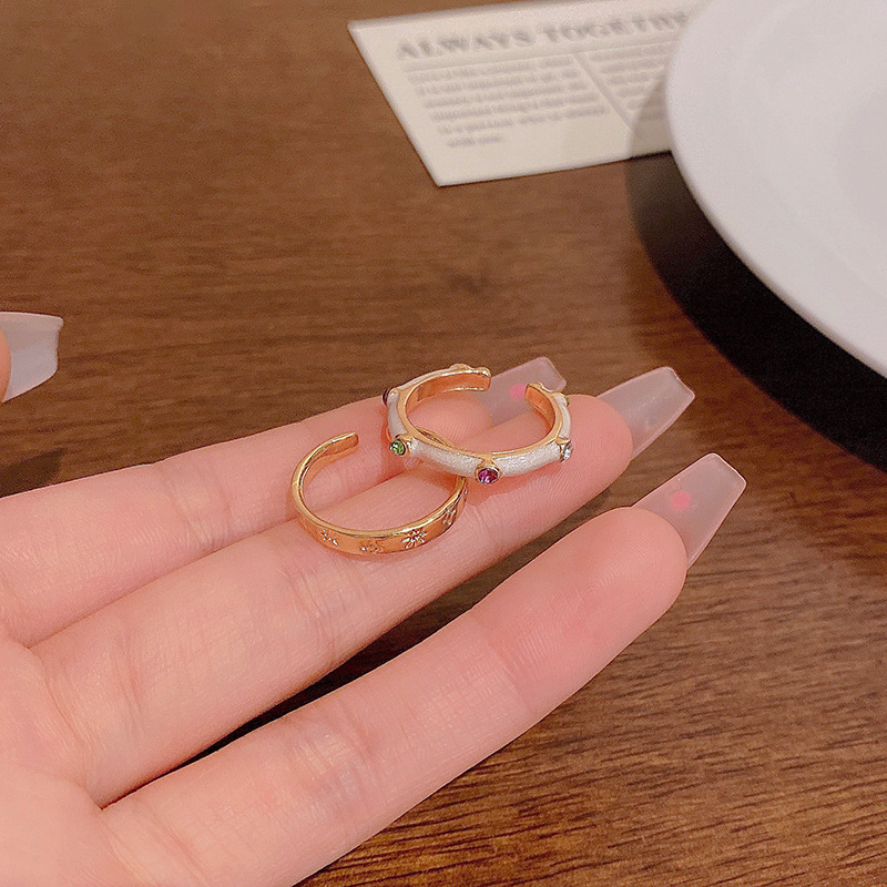 ins风滴釉彩色锆石戒指女复古轻奢芒星食指戒韩版高级感个性指环