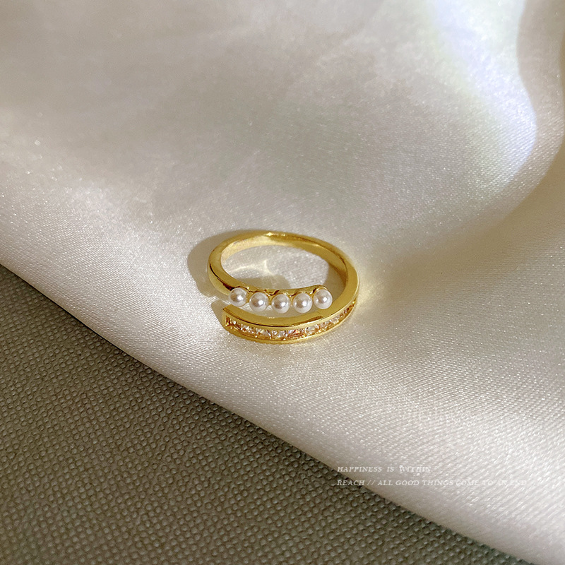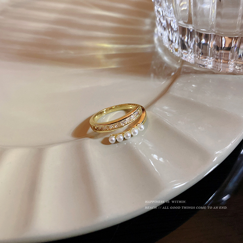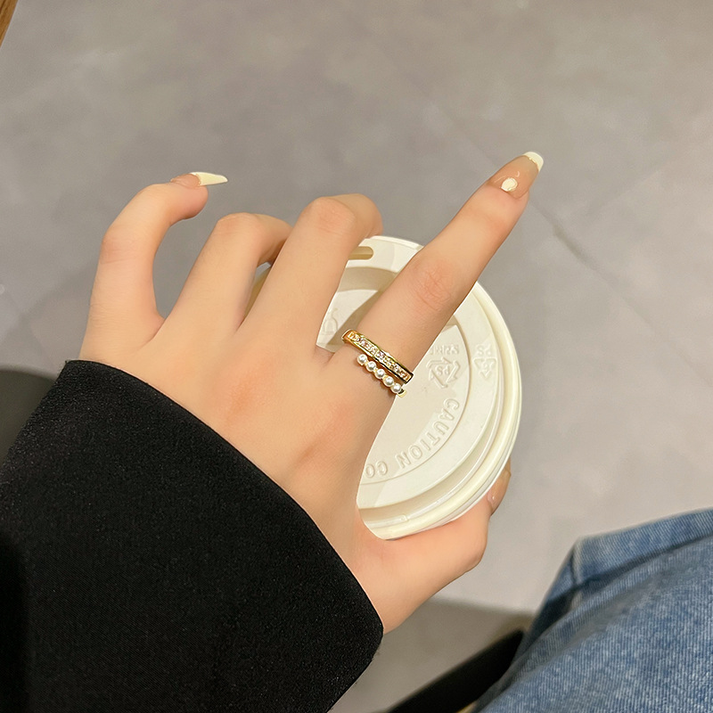 法式小众设计珍珠锆石开口戒指女时尚个性轻奢高级感食指戒子