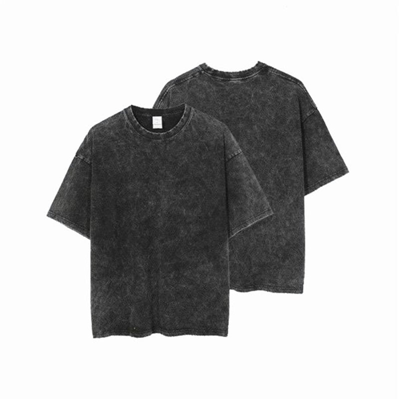 美式休闲夏季春夏宽松灰色圆领大码水洗做旧黑色纯色落肩重磅短袖