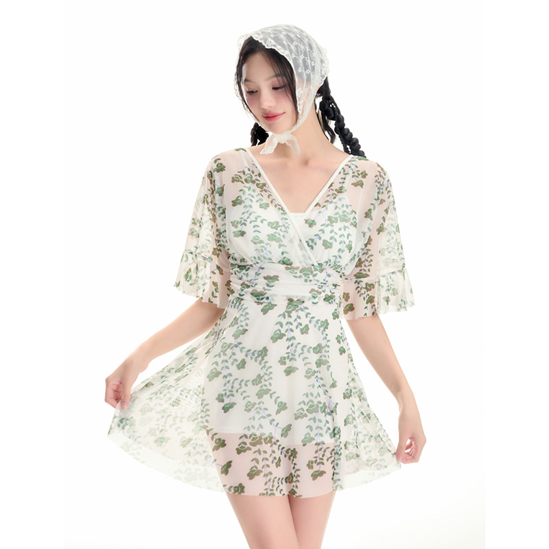 仙气游泳衣女夏连体平角保守显瘦遮肚小清新少女温泉甜妹学生泳装