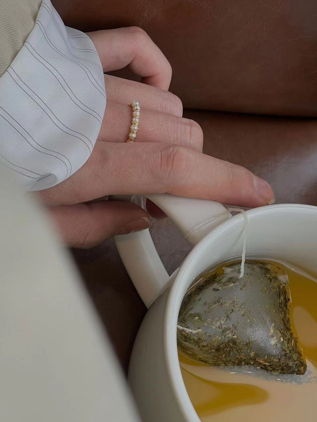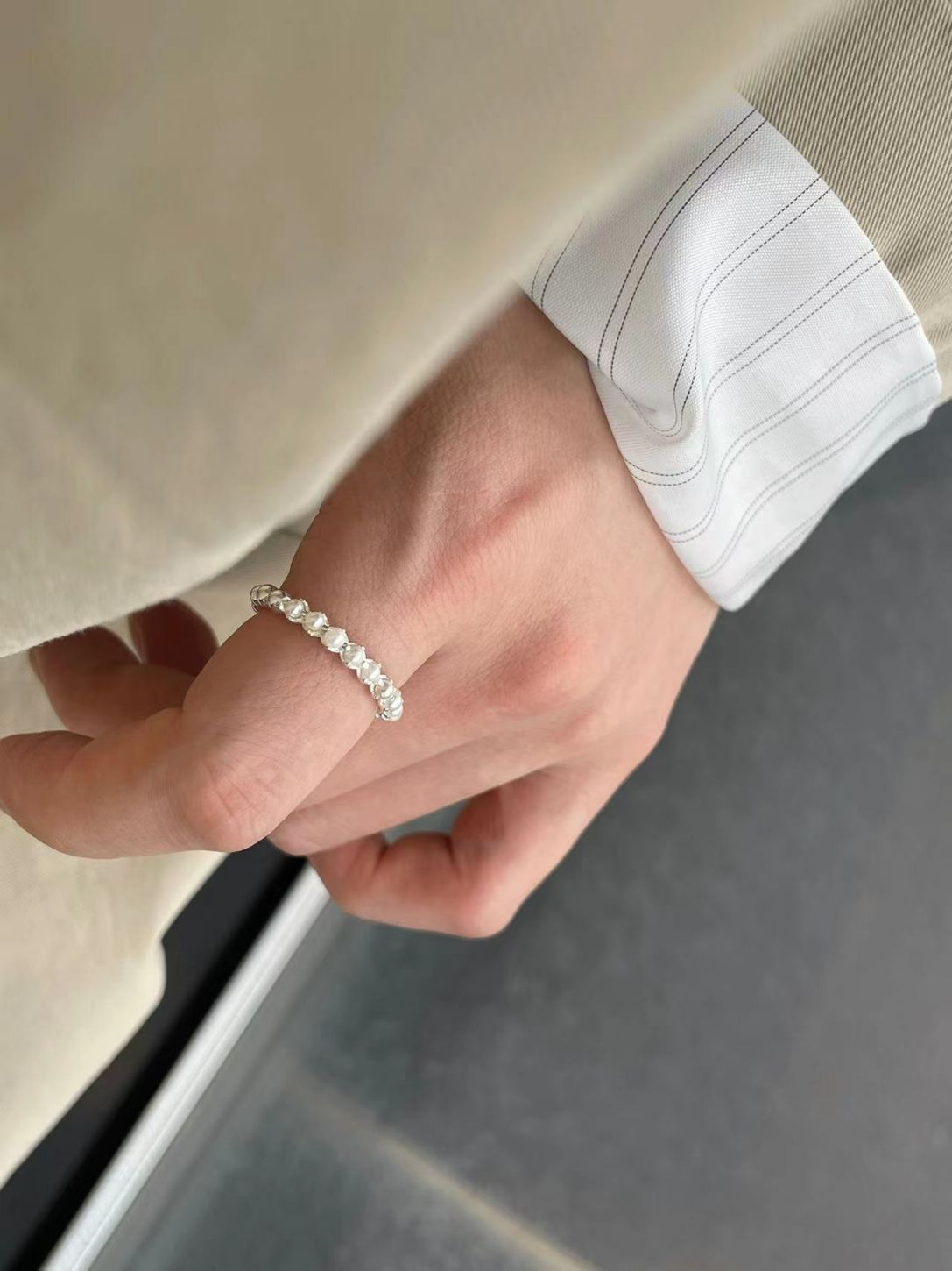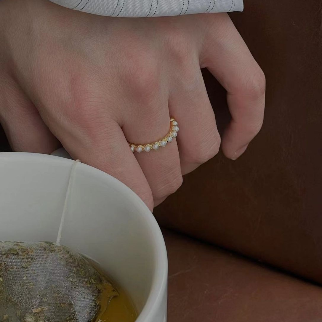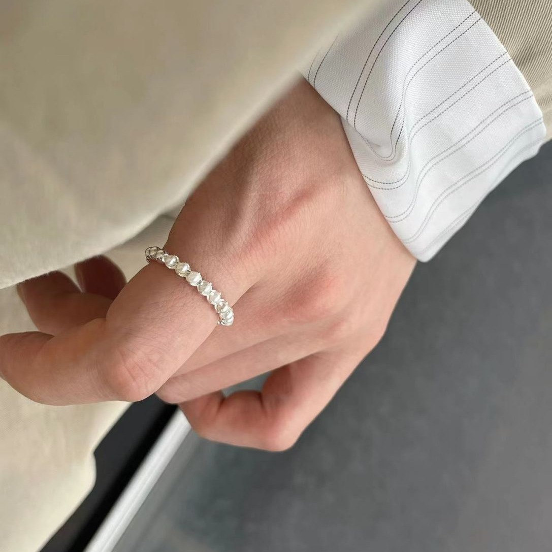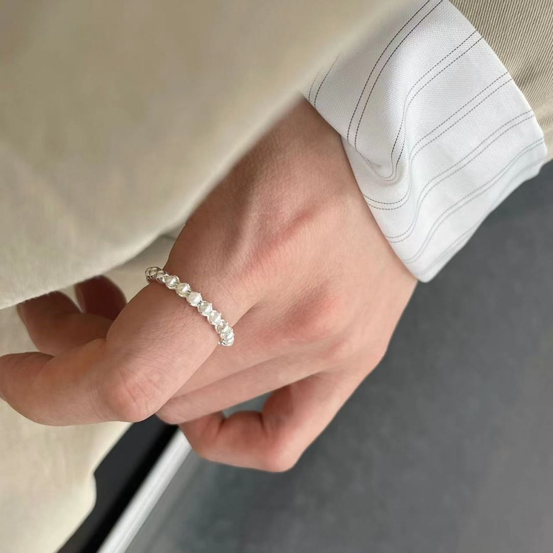 925纯银珍珠素圈戒指高级感女时尚新款个性ins小众设计食指戒简约