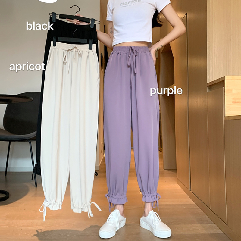 高腰阔腿裤裤子夏季新款宽松休闲裤灯笼裤哈伦裤女薄款九分裤