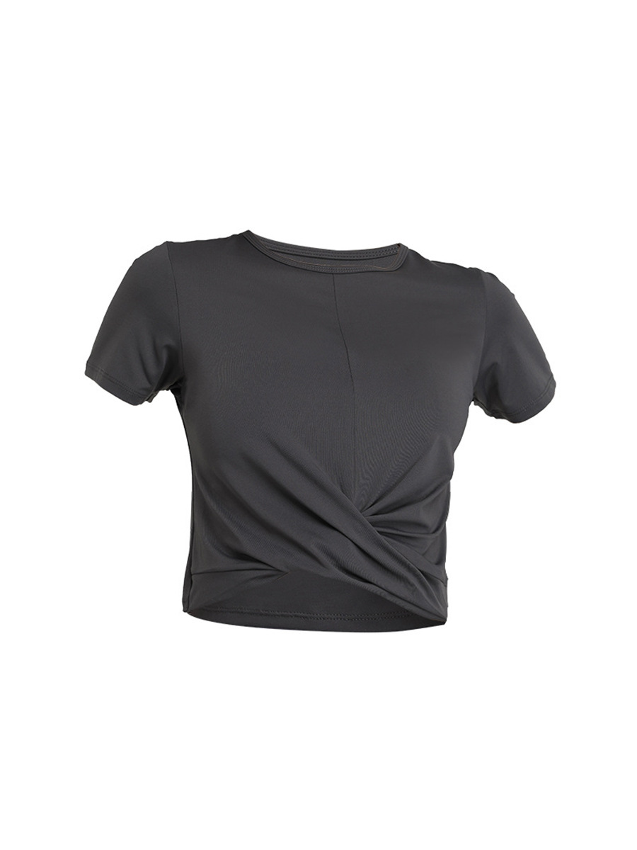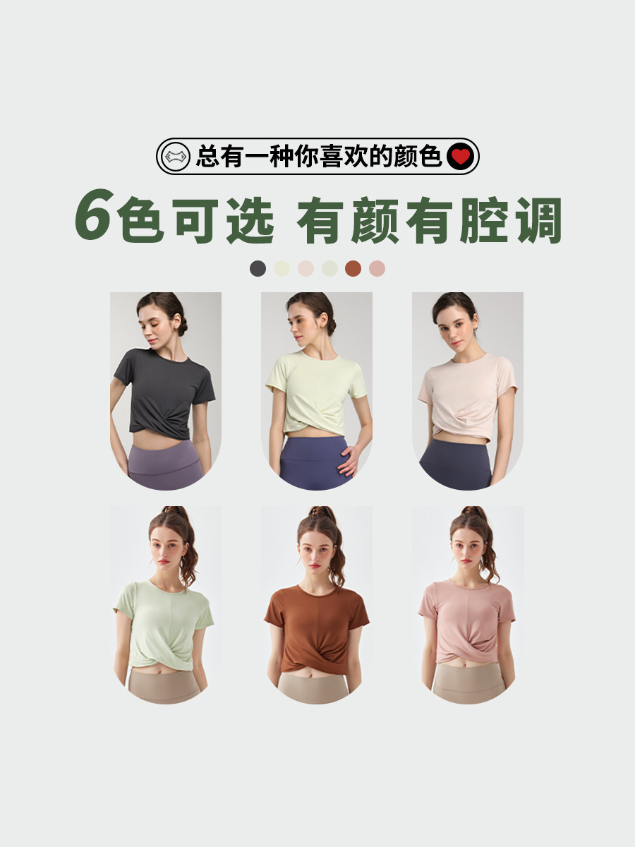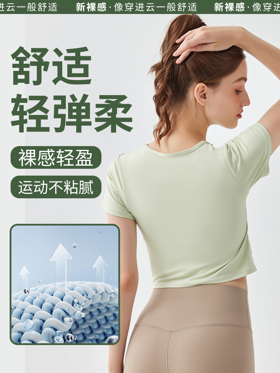 夏裸感透气瑜伽服运动跑步速干短袖T恤性感时尚外穿弹力健身服女