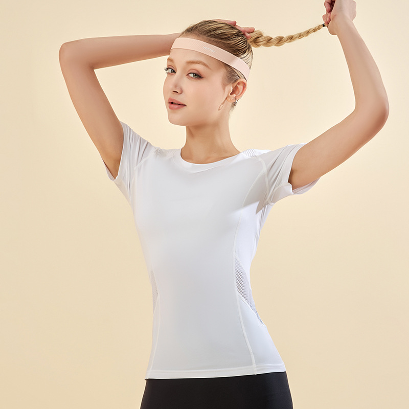 运动T恤女修身显瘦速干短袖健身房跑步夏季簿款瑜伽服健身服上衣
