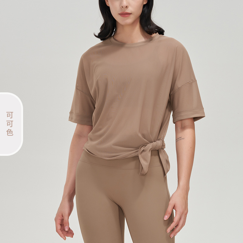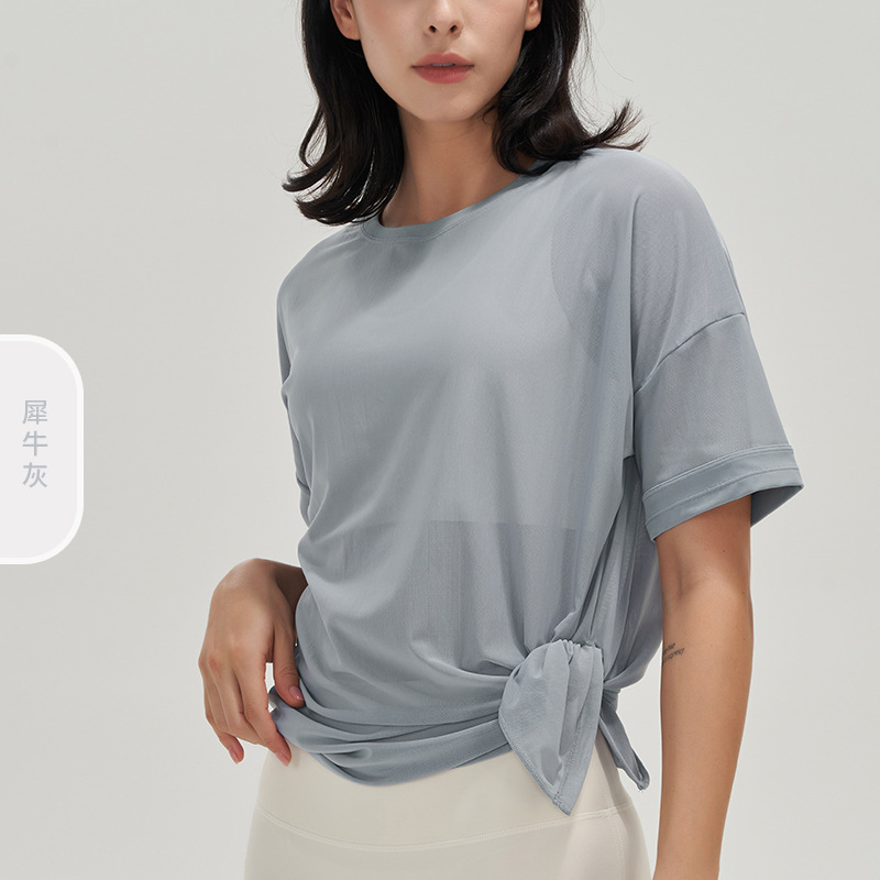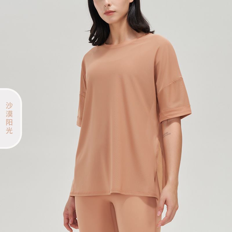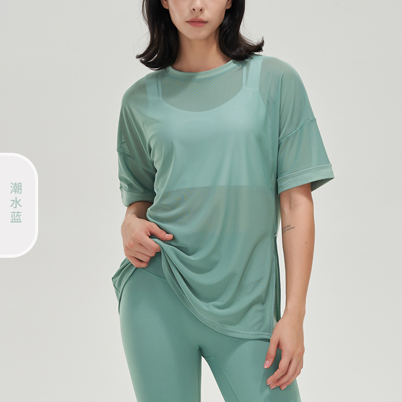 瑜伽服短袖网纱运动T恤女速干衣夏透气宽松运动罩衫健身上衣