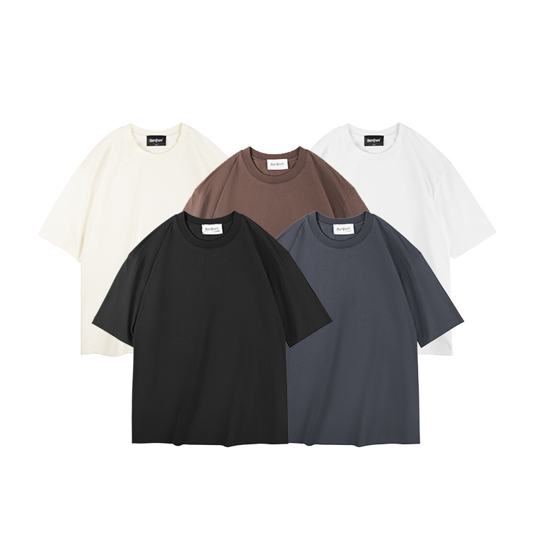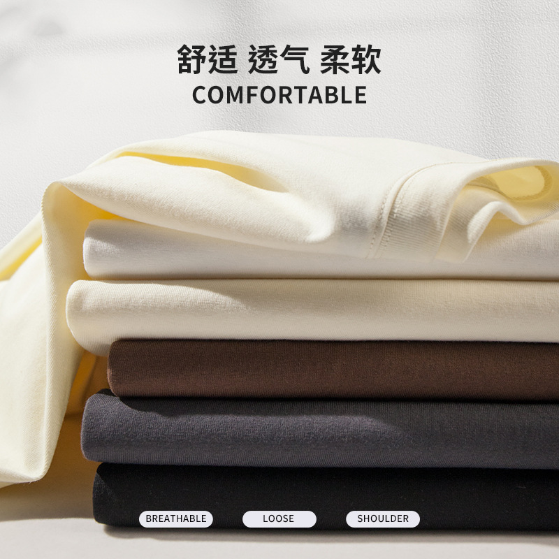直播260重磅美式三防短袖男女宽松大码t恤圆领半袖纯色体恤打底衫