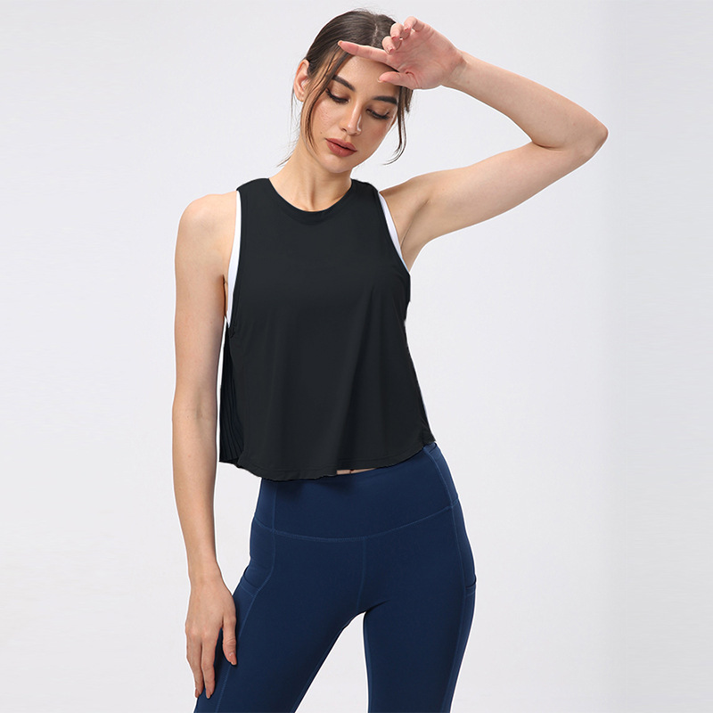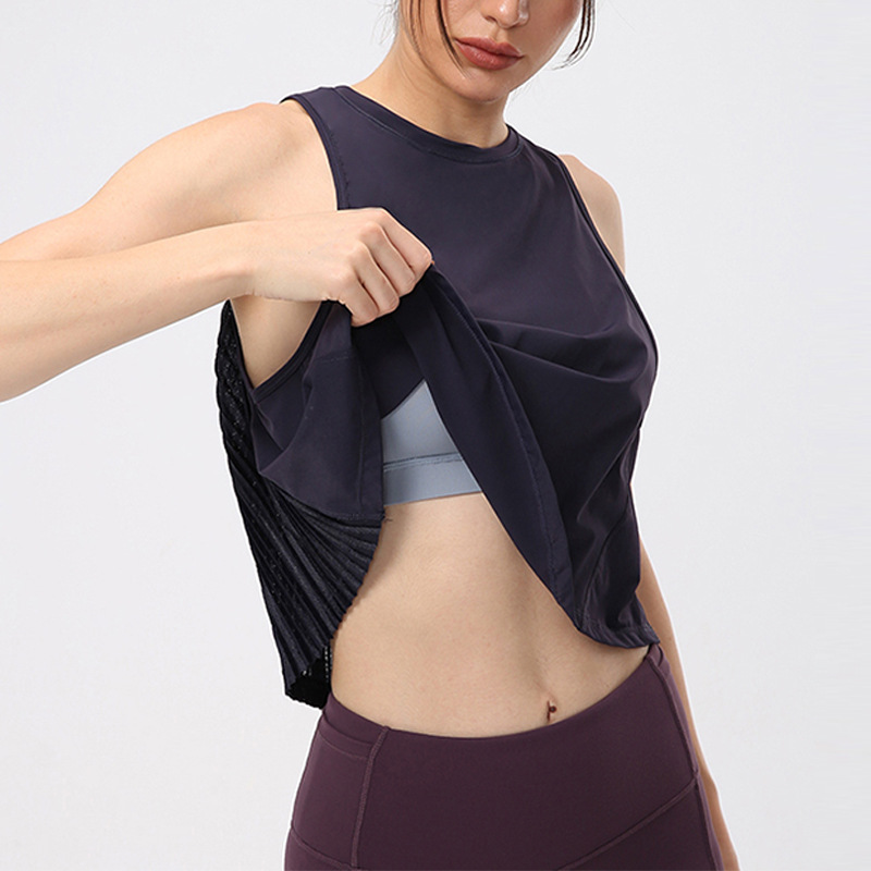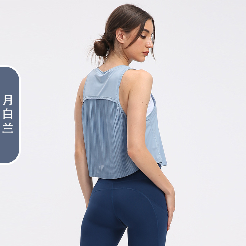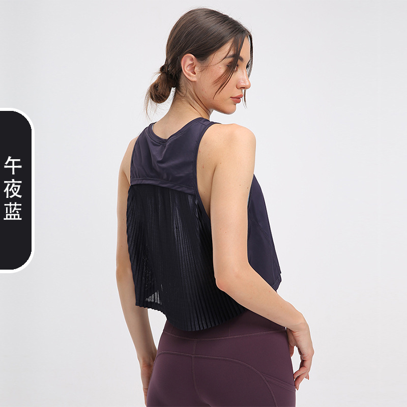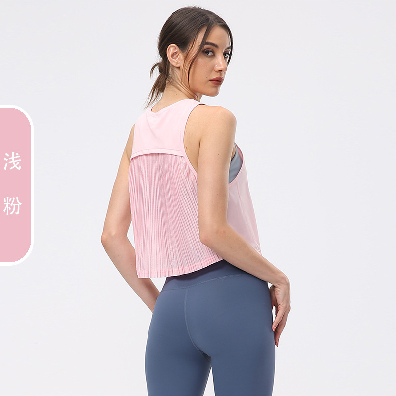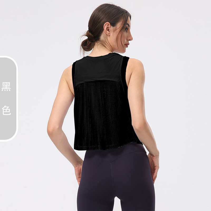 瑜伽罩衫女宽松速干夏季薄款百褶压皱健身服上衣外穿无袖运动背心