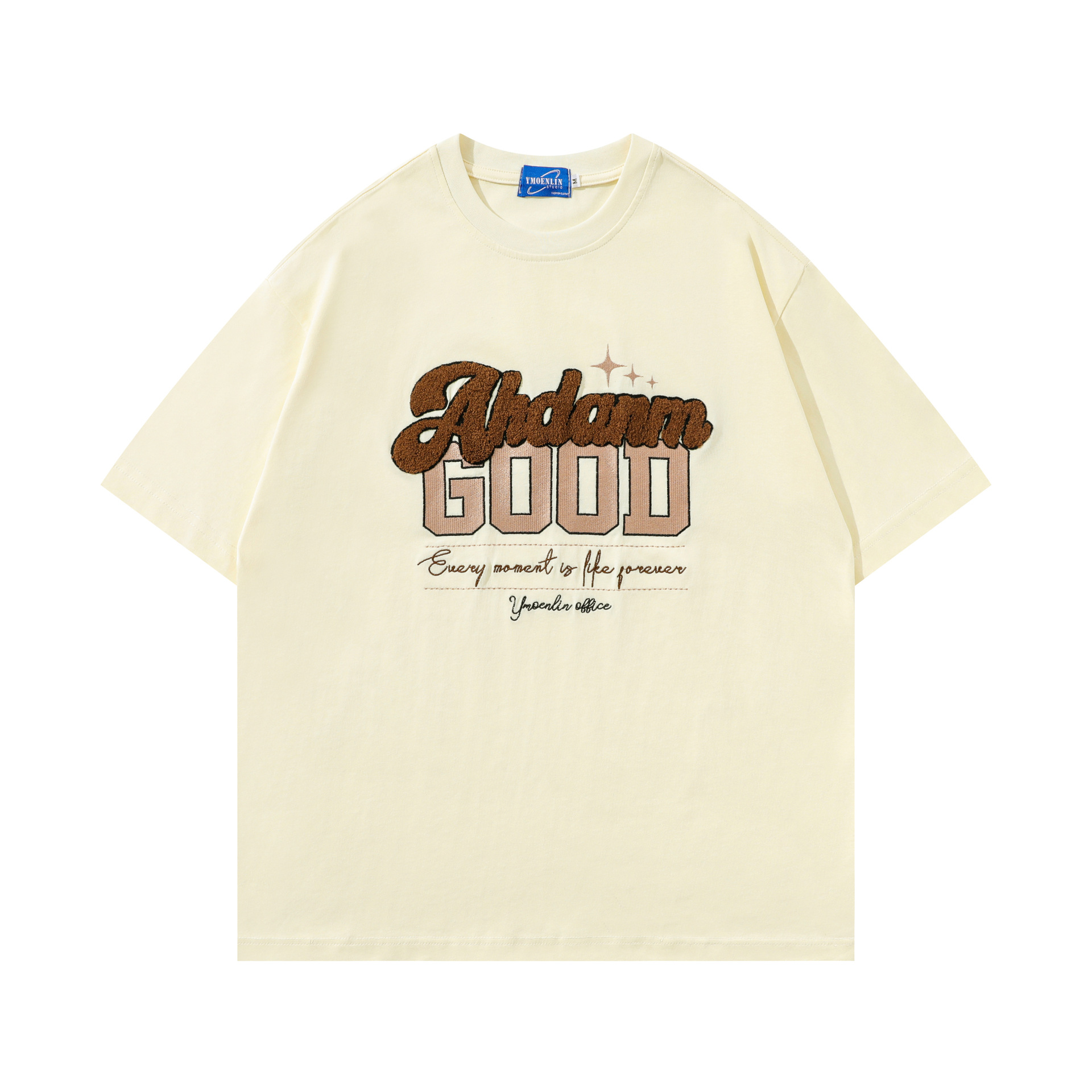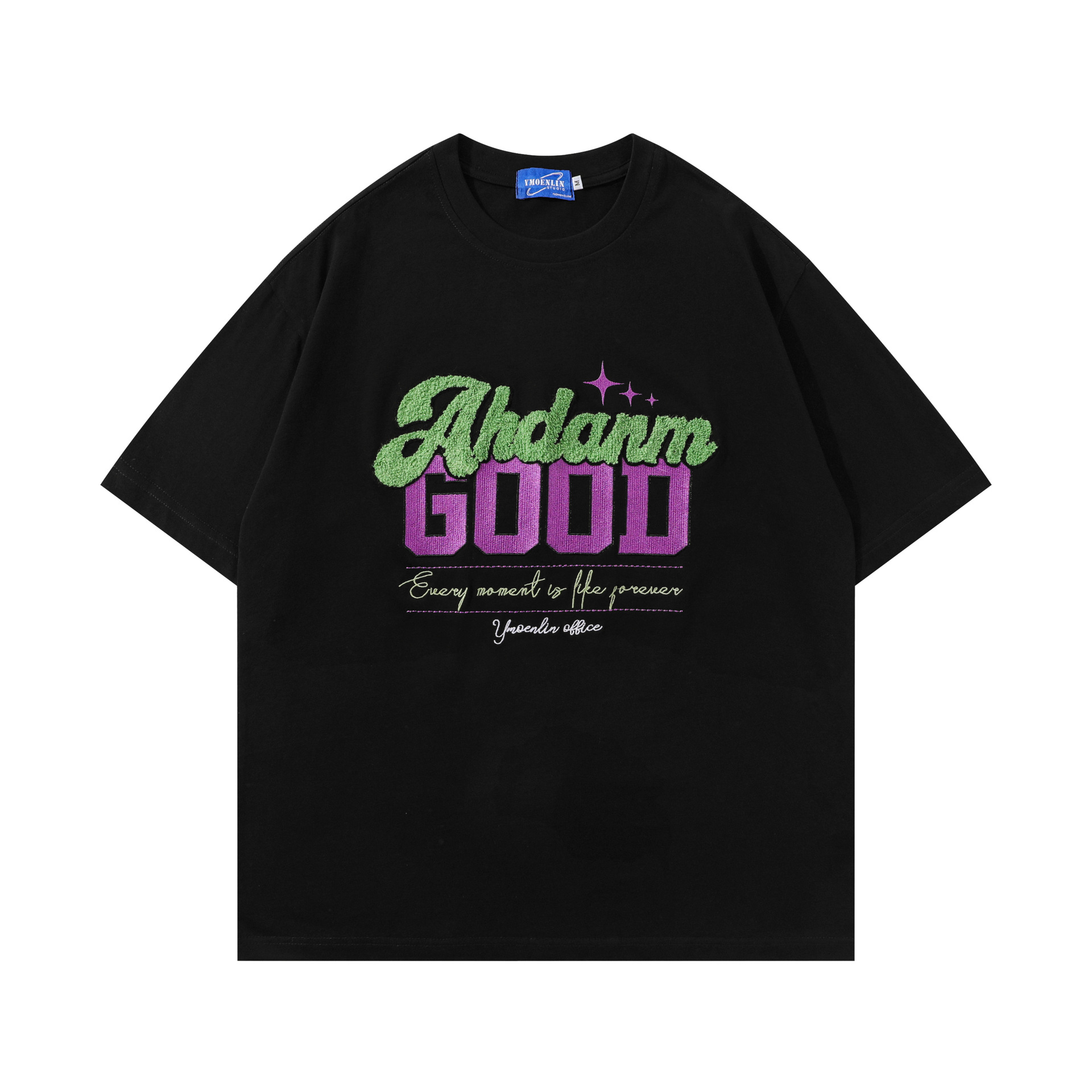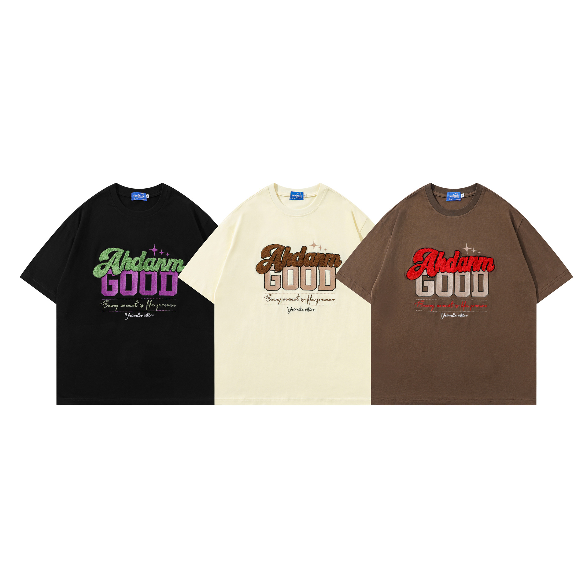 街头潮流毛巾绣字母印花体恤男女时尚百搭oversize情侣款短袖t恤