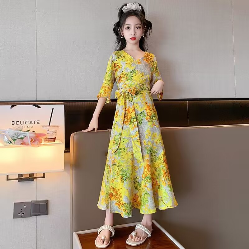 女童碎花连衣裙夏装海边度假沙滩裙洋气波西米亚夏季中大童网红裙