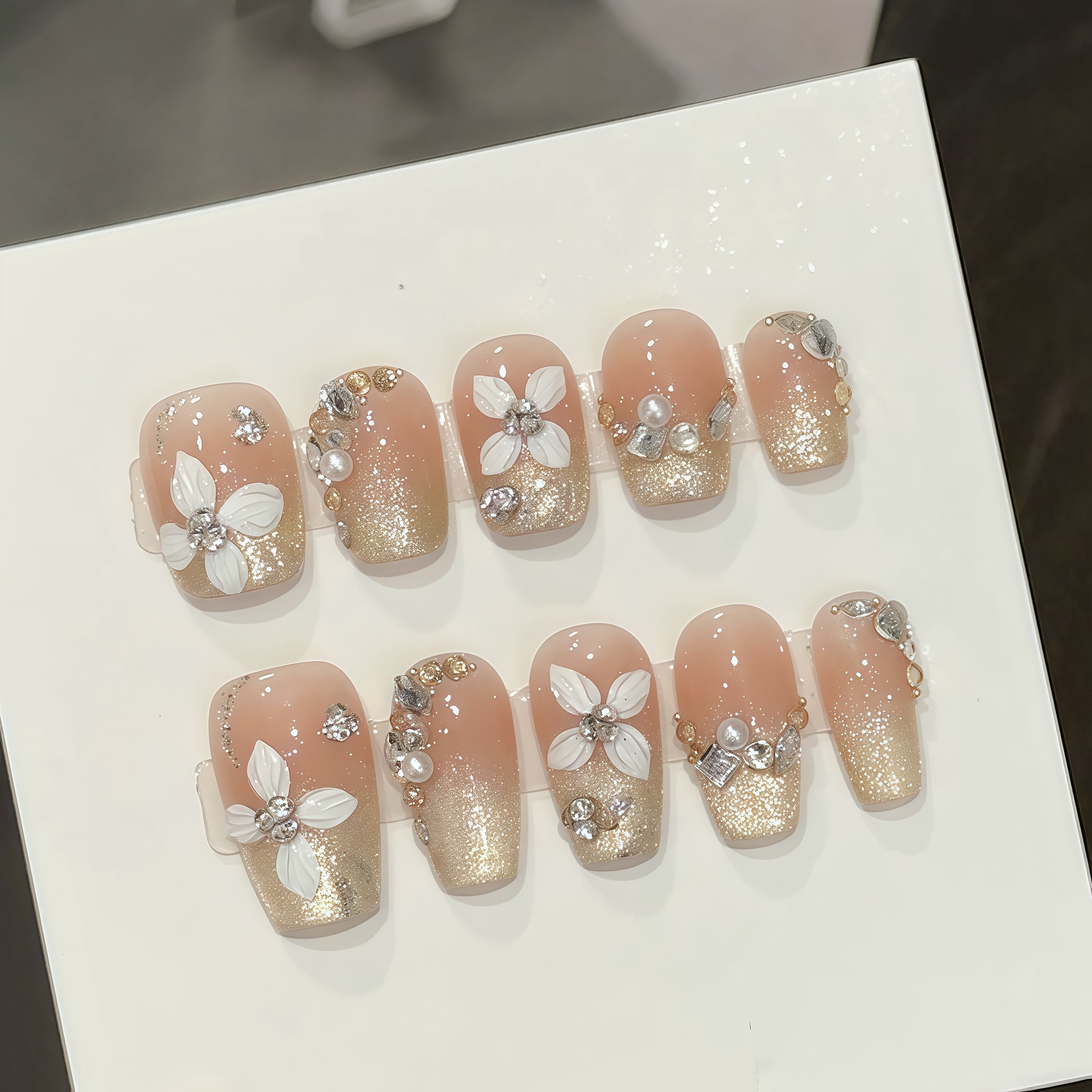 【花瓣月影】艺禾美甲纯手工穿戴甲纯欲爆闪猫眼腮红手绘立体捏花