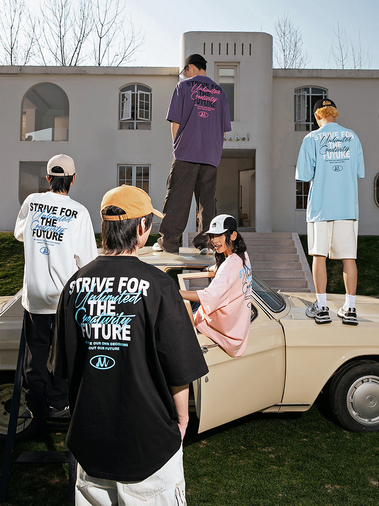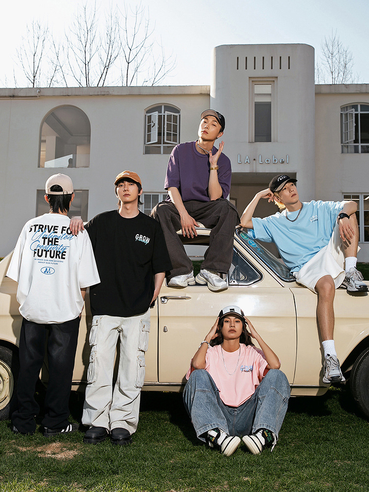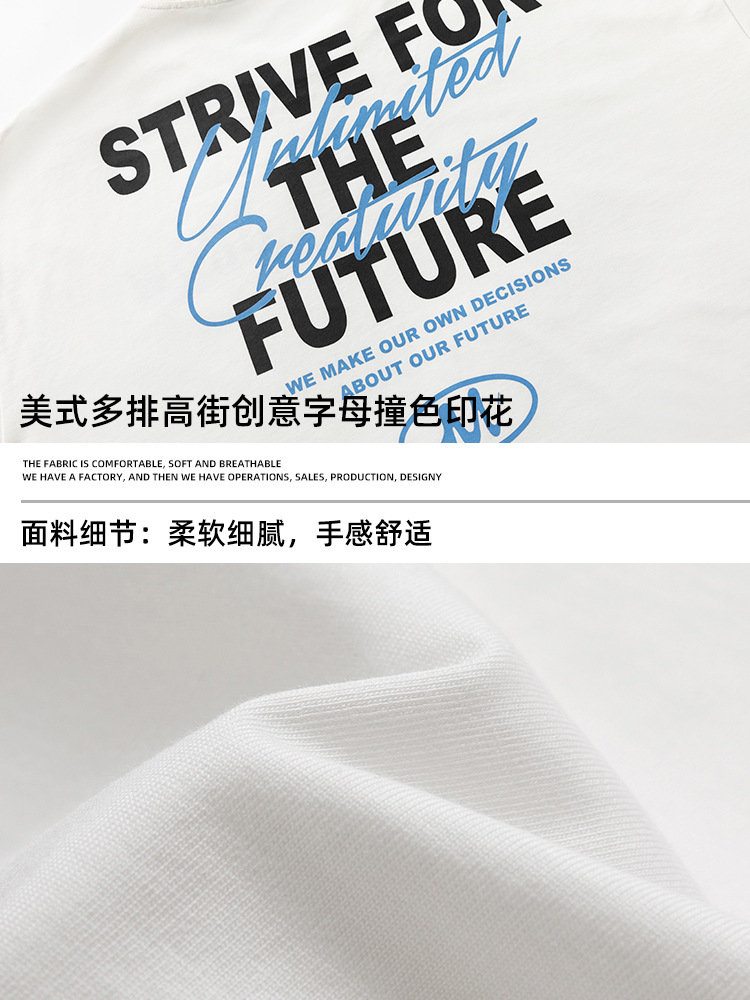 国潮夏季印花短袖T恤男女同款宽松情侣美式街头复古休闲半袖体恤