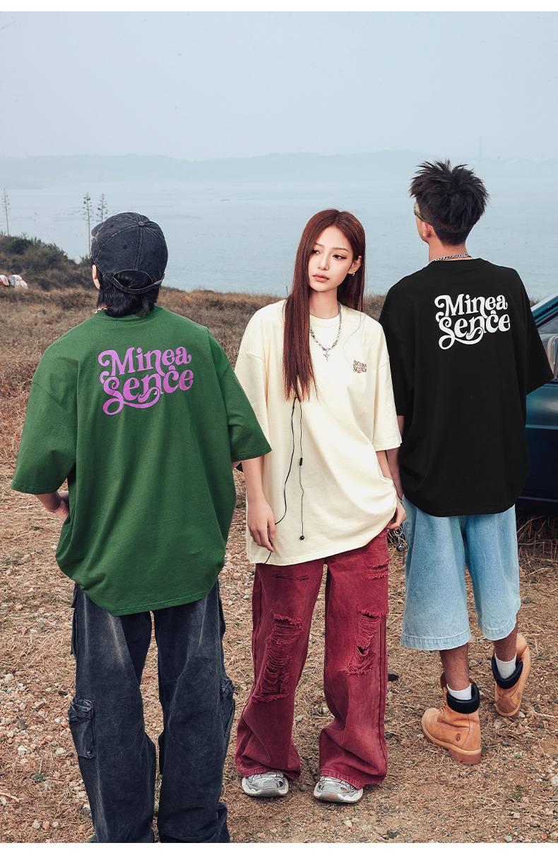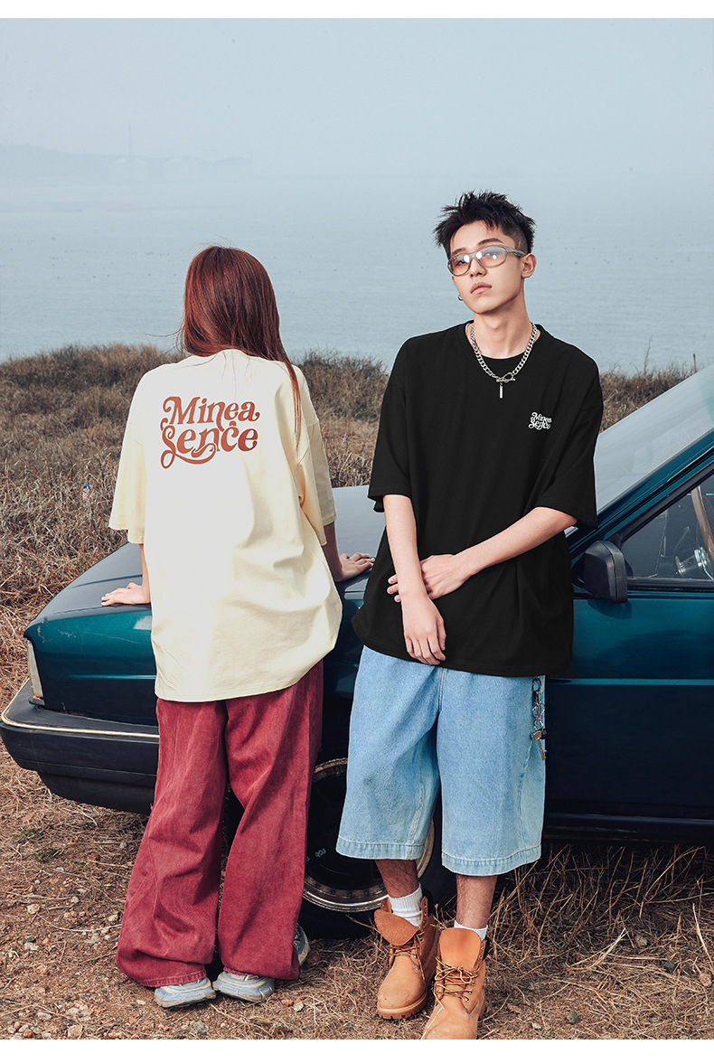 美式复古字母印花短袖T恤男女同款夏季新款国潮宽松圆领情侣体恤